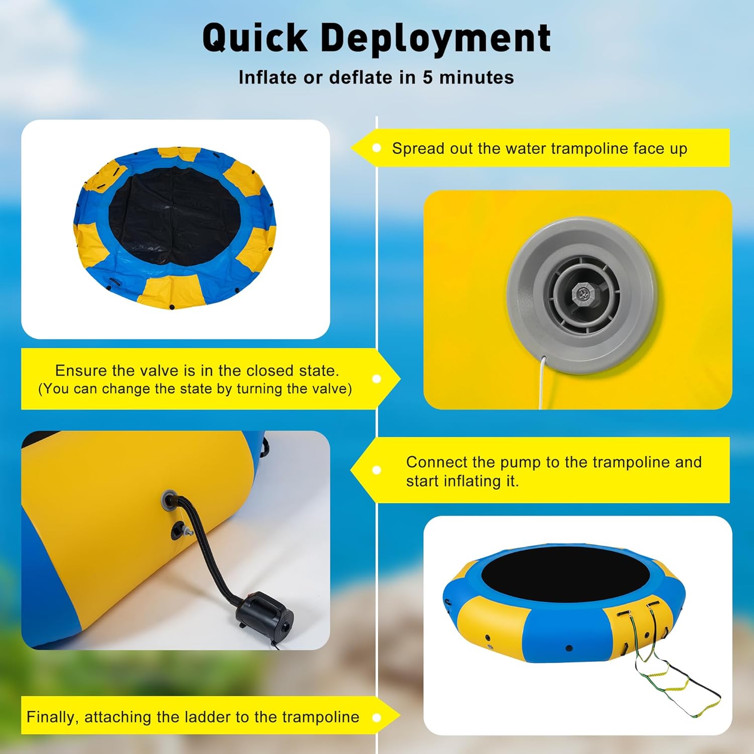 Multiple Uses: Whether you choose to use it as a water trampoline, on the lawn, or at the beach, as a floating platform on the water, or as a bouncer for fitness exercises, it will offer entertainment for the entire family.
