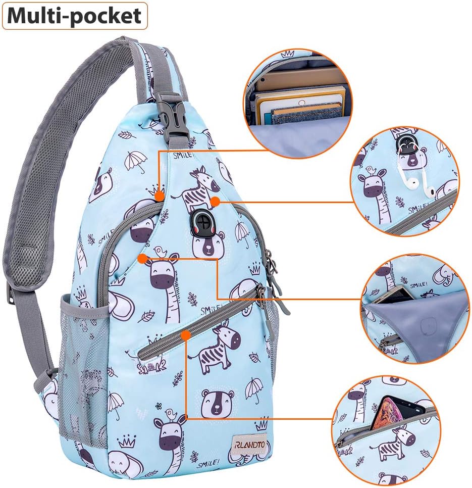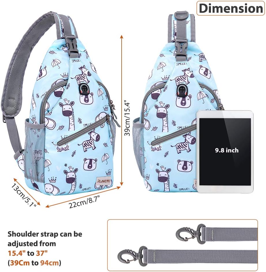 5 SEPARATE COMPARTMENTS OF DIFFERENT SIZES: One main large zipper compartment of our sling bag for women men can hold 10″ iPad,and two smaller zipper compartments for power bank,tissues,purse,keys some kinds of small accessories as well as two little mesh bag.A cellphone pocket in the shoulder strap of this sling backpack can fit all phones up to 6.7″.An earphone hole in the front pocket enables you to enjoy music easily