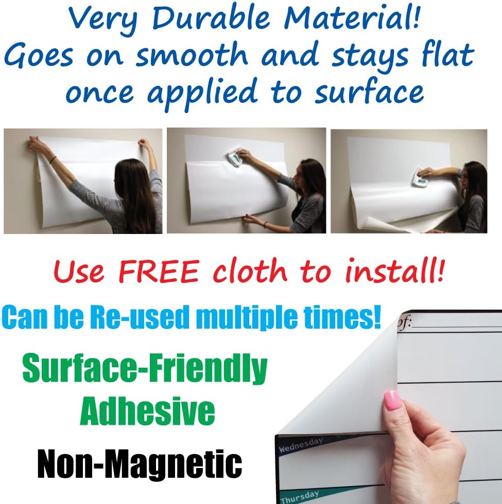 Effortless Installation – Installing your planner is quick and easy! Simply peel the backing and stick the self-adhesive film to any smooth, flat surface. The surface sticks securely but can be repositioned or removed without leaving sticky residue behind.