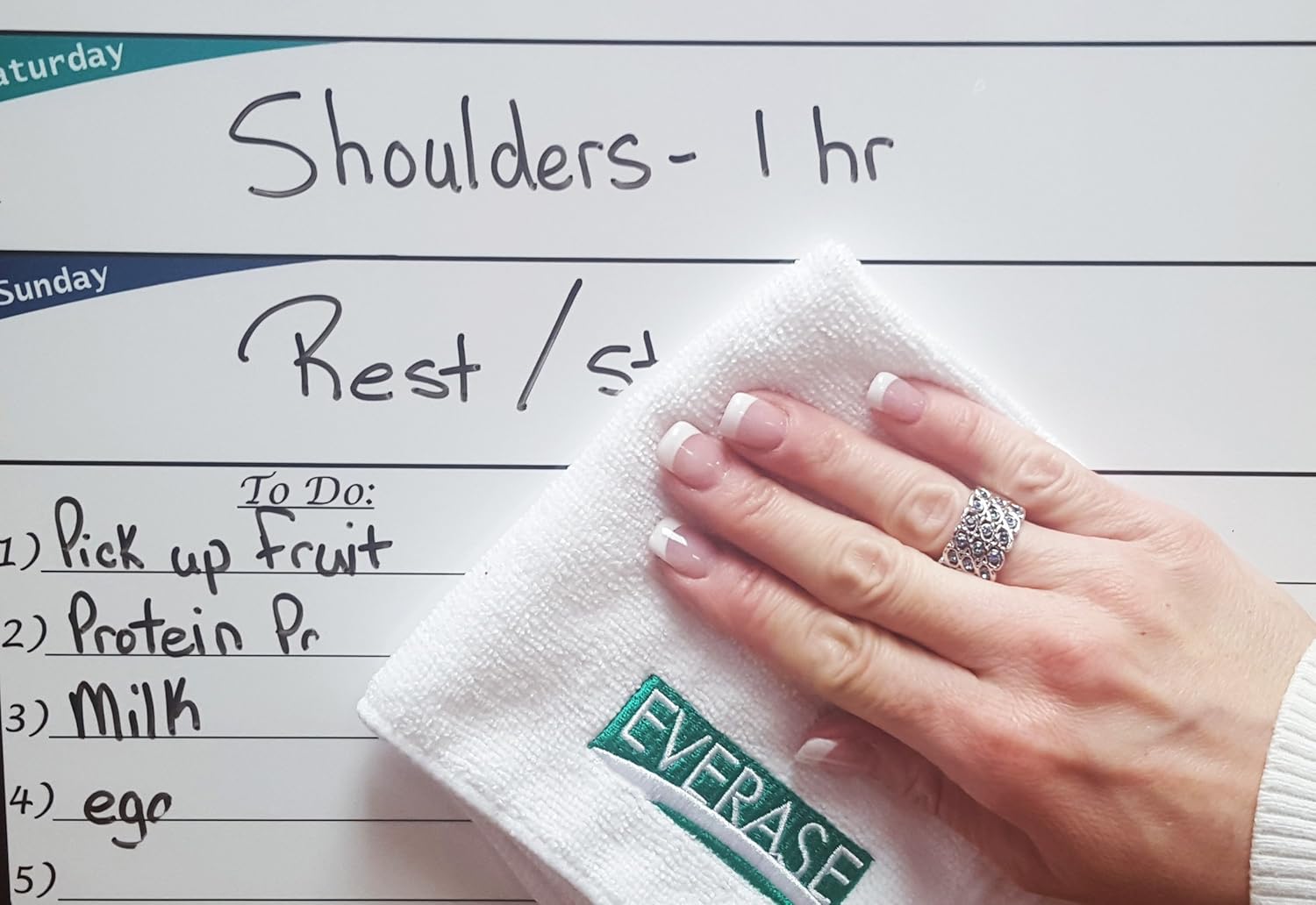 Everase Re-Stic Dry Erase Self-Adhesive Peel & Stick Weekly to-Do List & Shopping List (12 x 18 in) – Removable White Surface, Marker & Cloth Included Ideal for Walls, Doors, Desks & Refrigerators
