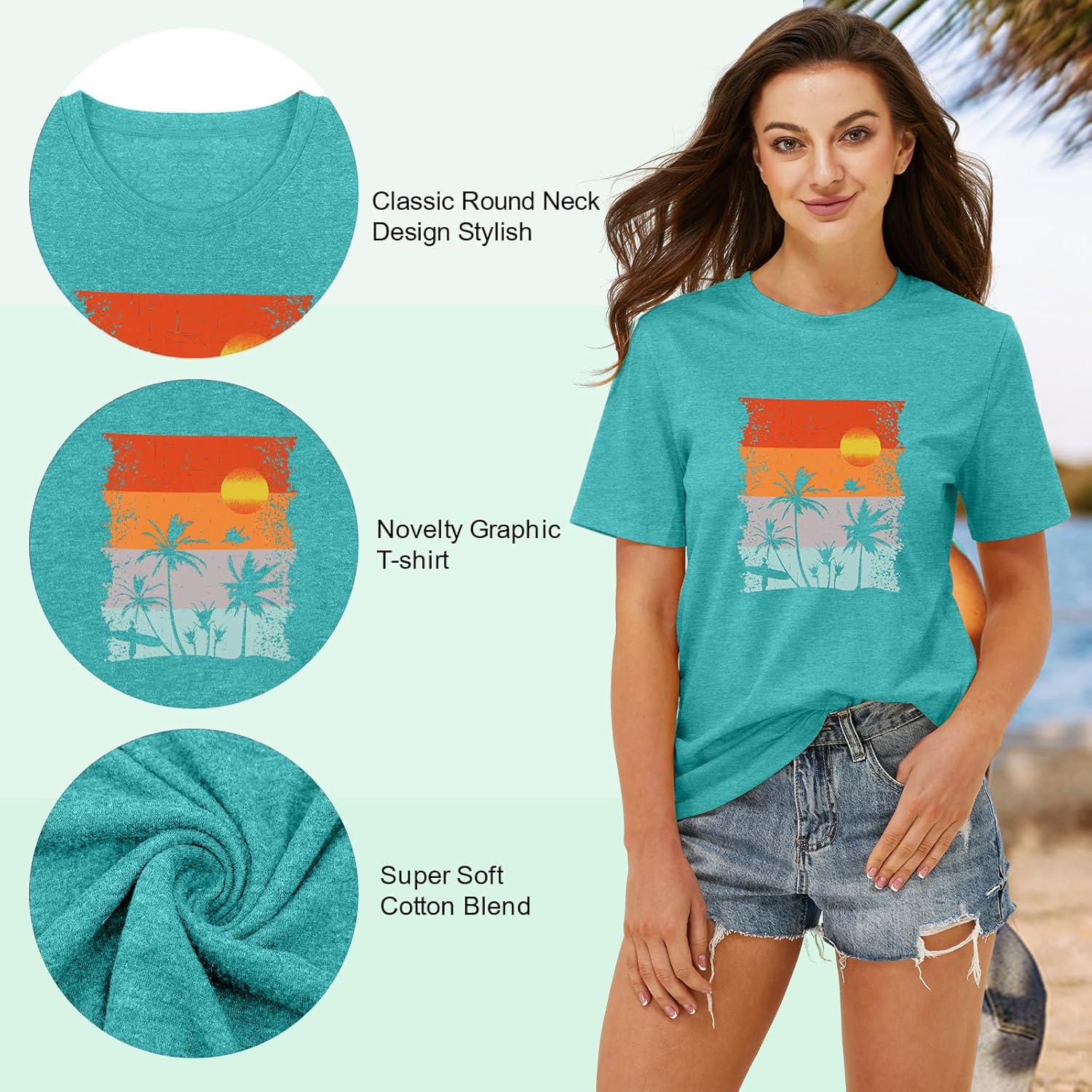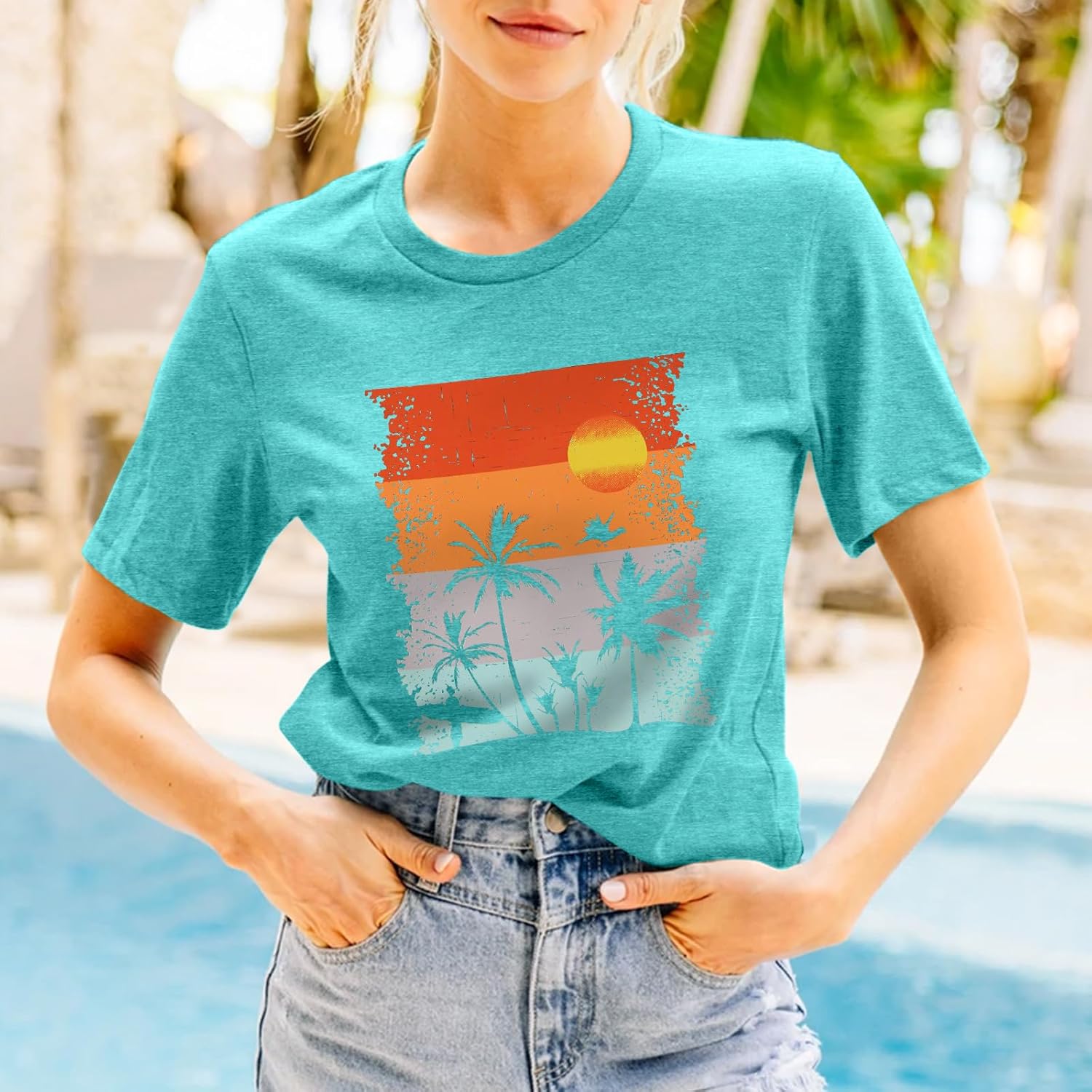 Womens Palm Tree Shirts Vintage Sunset Graphic Tropical Beach Tee