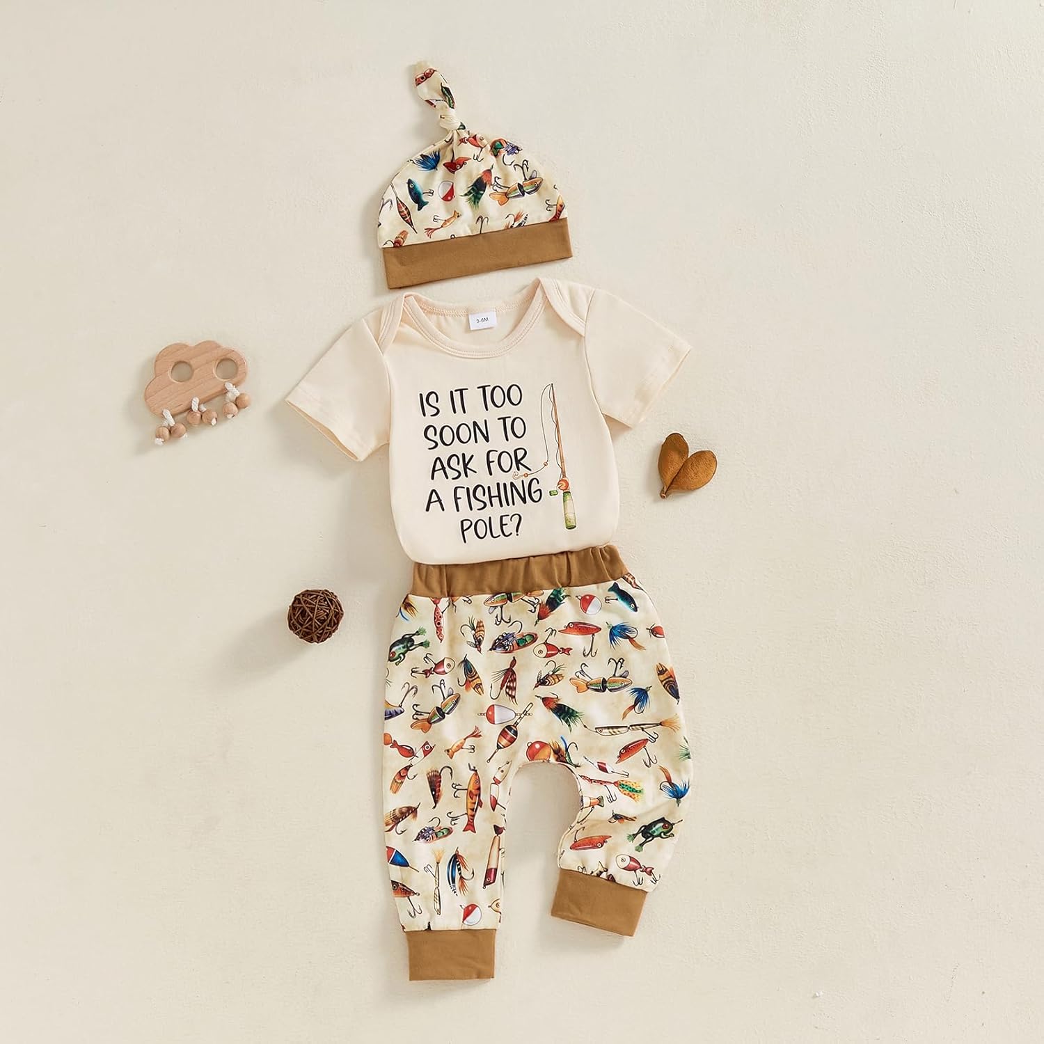 Newborn Baby Boy Clothes Fishing Short Sleeve Romper Shirt Tops Pants Summer Spring Outfits Cute Hat Set