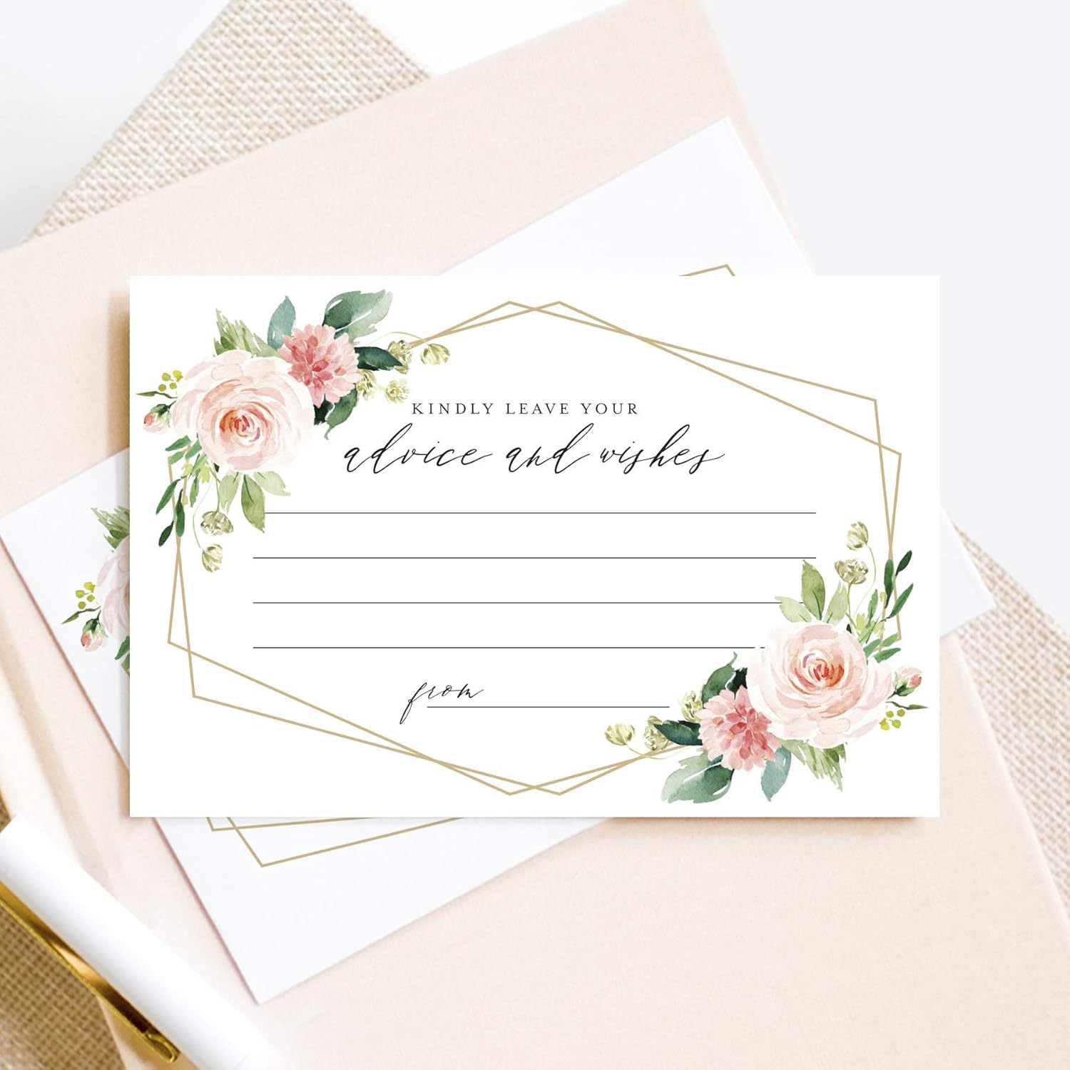 Bliss Collections Advice and Wishes Cards, Blush Floral Geometric Design, Perfect for the Bride and Groom, Baby Shower, Bridal Shower, Graduate or Event! Pack of 50 4×6 Cards