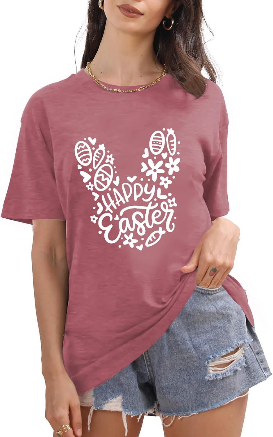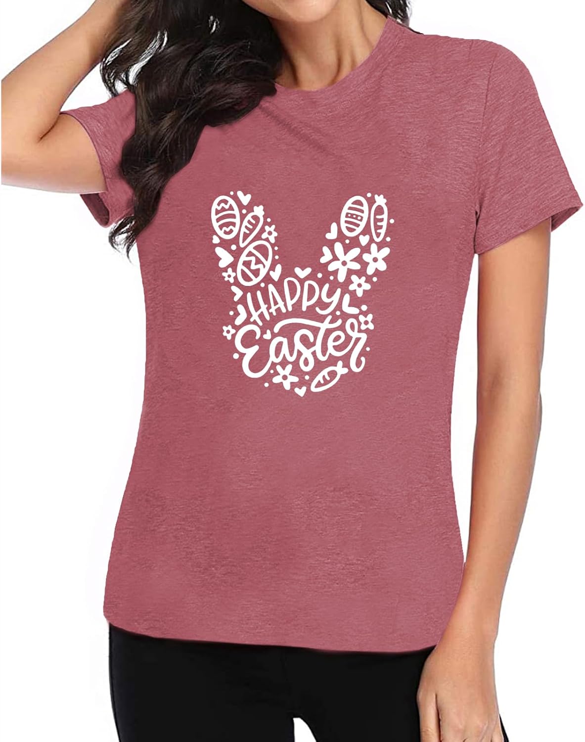 Teacher Bunny Shirts for Women Easter T Shirts Funny Rabbit Graphic Tees Teacher Casual Short Sleeve Top