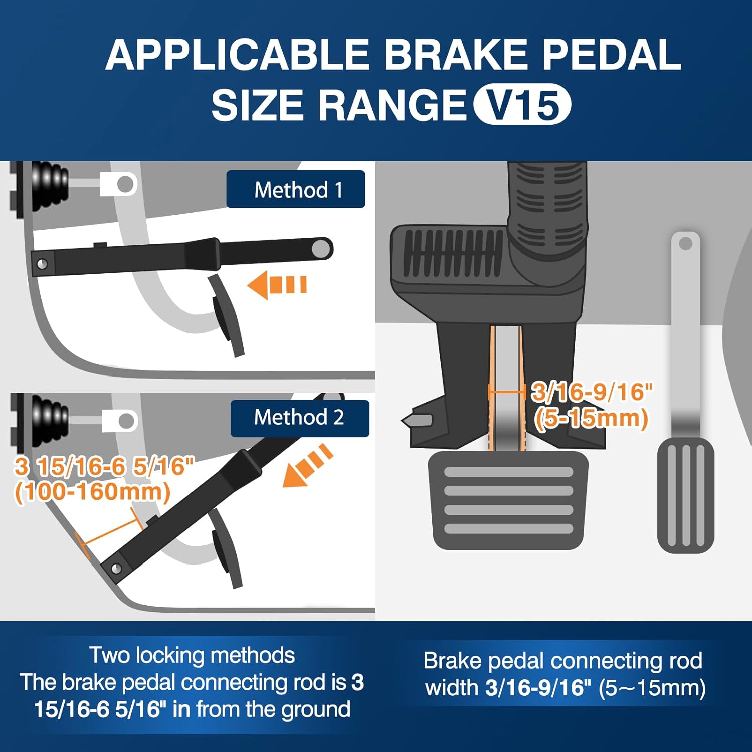 【UNIVERSAL FIT MOST VEHICLES】- This antitheft locking is suitable for brakes/clutches with height :100~160mm(3 15/16-6 5/16″ ) and width :5~15mm( 3/16-9/16″). Our Car security anti theft easily locks under the brake pedal on most cars.