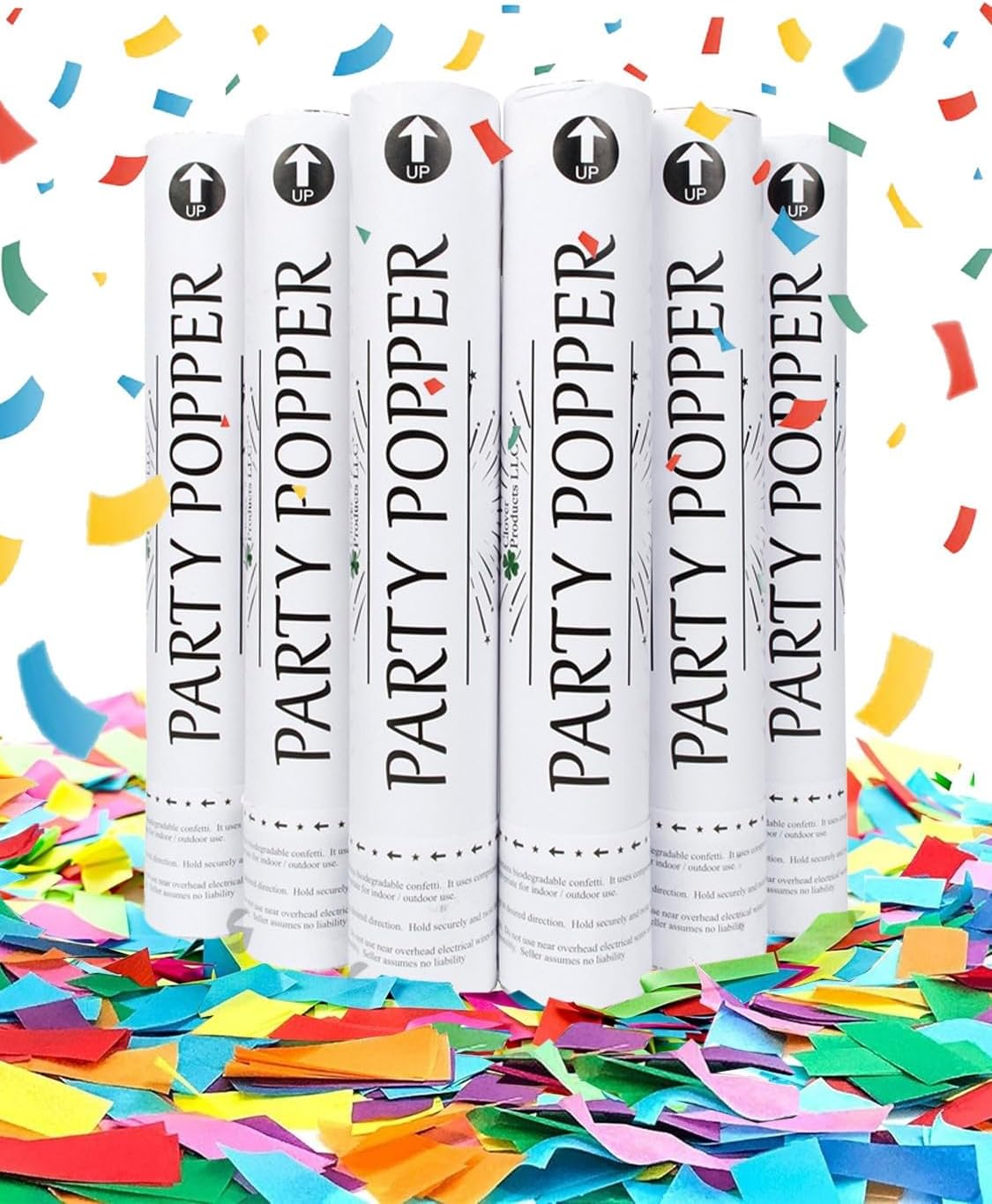 Clover Products 12″ Biodegradable Confetti Cannons | 6 Pack | Multicolor Poppers for Weddings, Birthdays & Events | Air-Powered, Safe & Easy to Use | Shoots 25 Feet for Indoor & Outdoor Celebrations