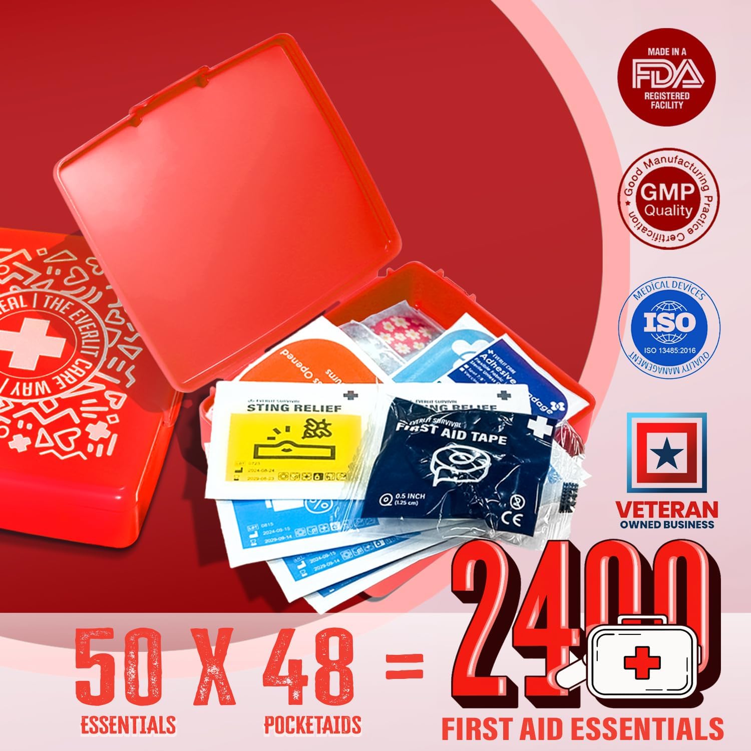 🩹 𝗖𝗢𝗠𝗣𝗥𝗘𝗛𝗘𝗡𝗦𝗜𝗩𝗘 𝗪𝗢𝗨𝗡𝗗 𝗖𝗔𝗥𝗘 | Filled with 600 hospital-grade medical items to effectively handle emergencies, each case contains 50 premium-quality first aid items, including adhesive plasters, sterile gauze pads, non-adherent pads, wound prep pads, medical tapes, sting relief pads and more. Be ready to treat cuts, scrapes, and stings confidently with the reliability of hospital-grade supplies at your fingertips.