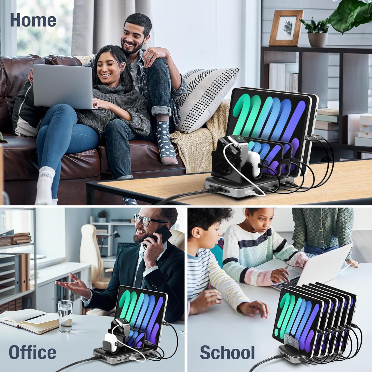 Up to 6 Devices Charging – Designed to support USB-C PD-enabled laptops, gaming handhelds, smartphones, tablets, and other devices. The charging station can power up to 6 devices simultaneously with a 160W charging capability.