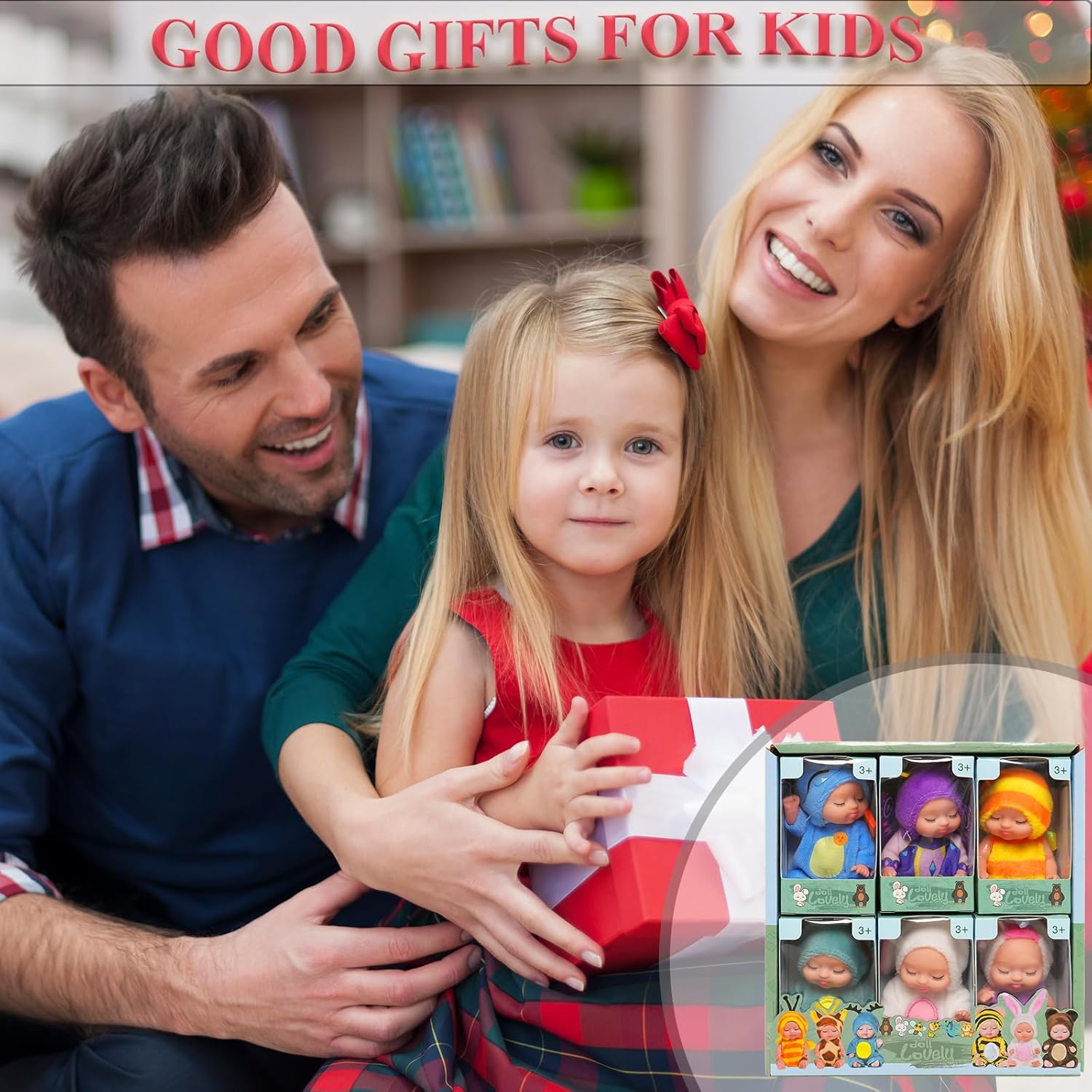 4 Inch Mini Baby Dolls 6pcs Set Lifelike Realistic Tiny Reborn Babies Dolls Toys with Cute Handmade Miniature Sleeping Doll Clothes for Suitability Gifts for Kids 3+ Shower Party Birthday Gifts
