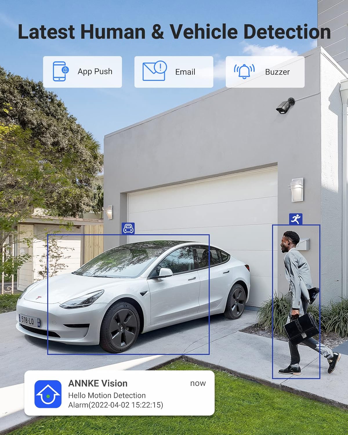 【Accurate Human & Vehicle Detection】The motion detection 2.0 can identify and swiftly extract primary objects such as people and vehicles with up to 99% great precision. And the system sends prompt notifications and email alerts to help respond quickly in real time.