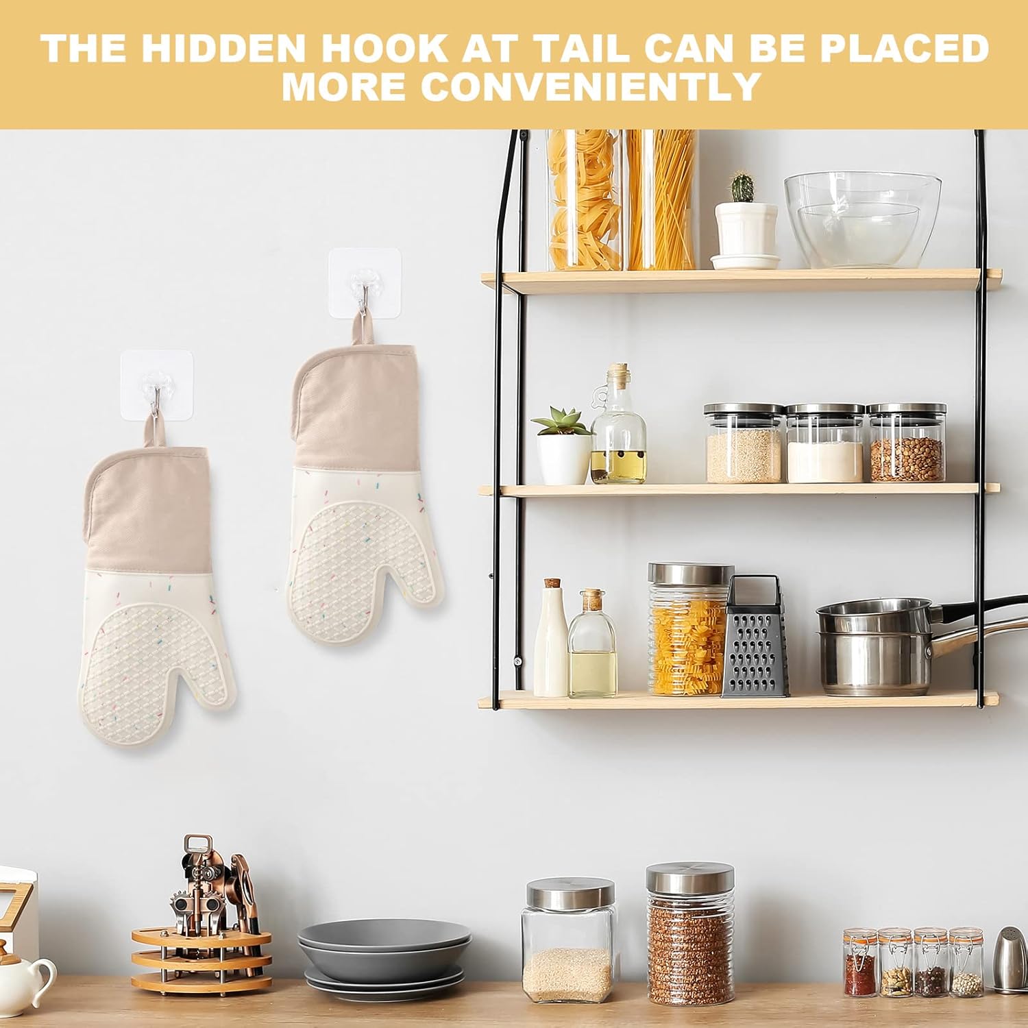 【EASY TO CLEAN & EASY TO STORE】Our kitchen oven mitts and insulation pads are stain resistant, easy to clean and easy to clean with just some warm water and a little soap. They won’t tear, thin or fray, let it dry naturally for reuse. Equipped with hanging holes for easy storage. You can hang it on the kitchen wall or other hooks to organize your kitchen.