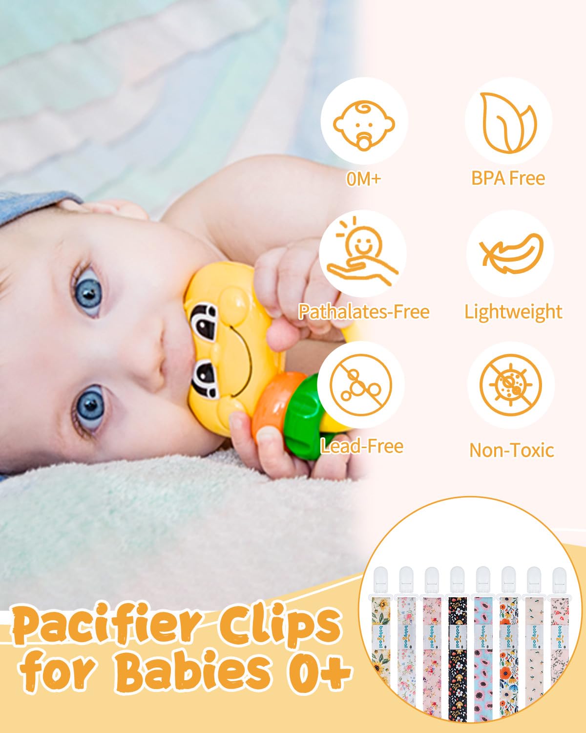 Safety: The stylish pacifier leashes are made of polyester fabric, and they are washable, durable and soft. All-in-one clips with metal teeth are safe and not easily get broken, but please do not let your baby chew on the clips to avoid a choking hazard. They are BPA Free, Phthalate Free, Latex Free, Lead Free, suitable for all ages, newborns, babies 0-6 months, toddlers ect.