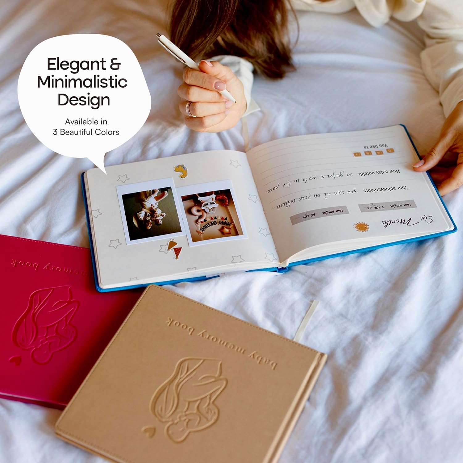 Customers find the baby memory book’s design elegant and appreciate its high quality for the price. The album provides ample space for pictures and journaling, with one customer noting it includes an envelope for small keepsakes. They like the detailed pages, with one mentioning the ability to record first words, and another highlighting its usefulness for documenting developmental milestones. Customers consider it a great gift for parents.