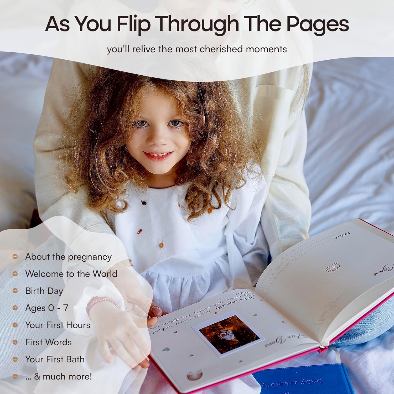 Loaded with pages designed for you to preserve the precious memories of your baby growing up. Plenty of space to write a letter to your baby, jot down notes about their birth and future birthdays, and document exciting moments like their first crawl, first steps, first haircut, major holidays – even store photos and other treasured mementos.