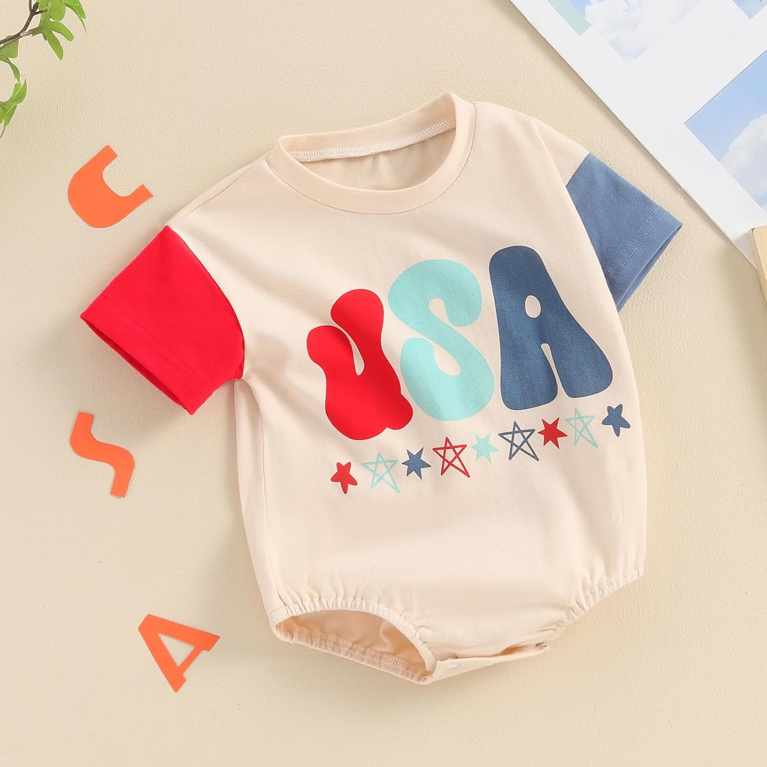 BemeyourBBs Baby Boy Girl 4th of July Outfit USA Short Sleeve Bubble Romper Jumpsuit Newborn Fourth of July Summer Clothes