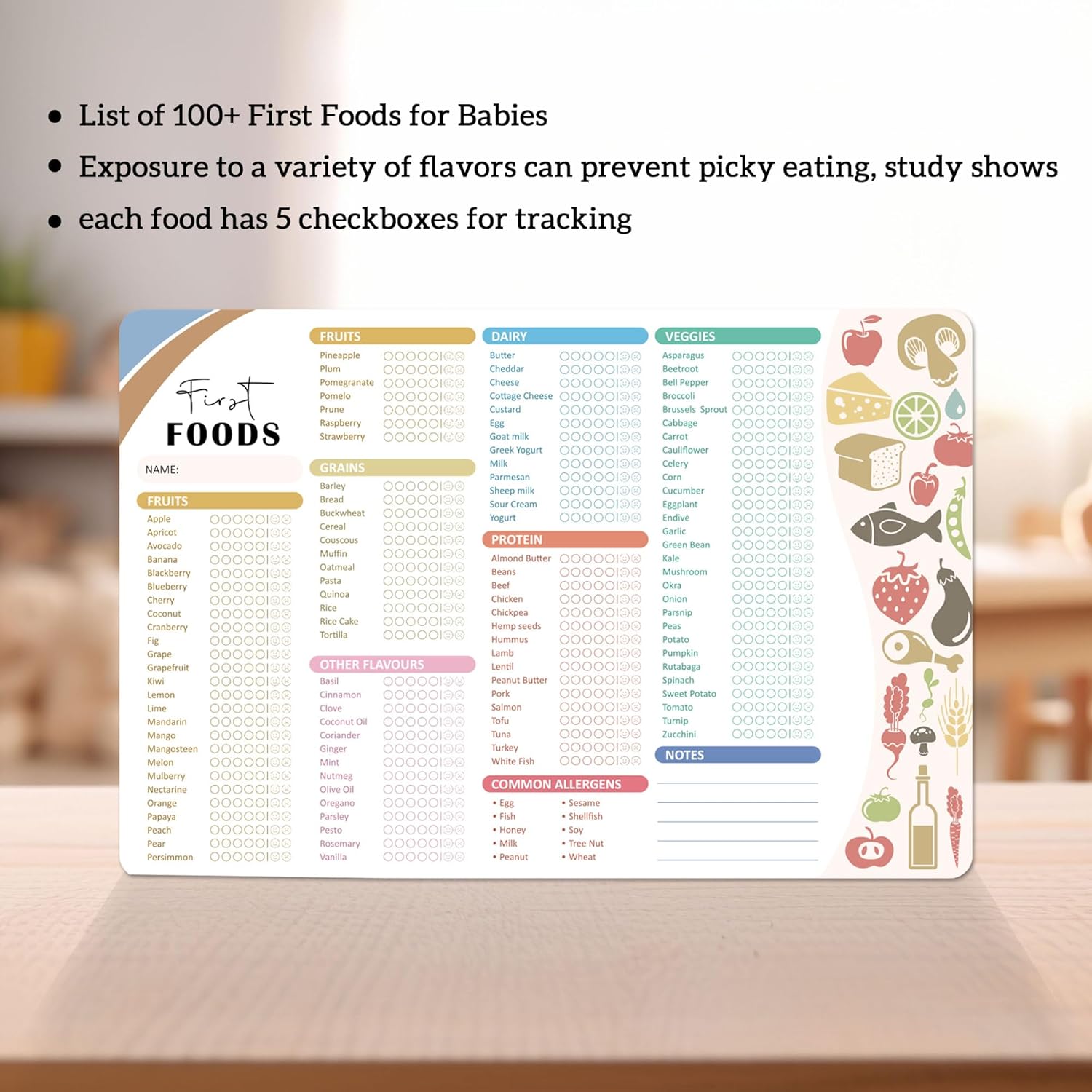 IDEAL GIFT FOR NEW PARENTS: This first foods chart for the refrigerator is an excellent gift for new parents. As toddler gifts, it combines functionality with thoughtful design, providing a valuable tool for tracking the growth and development of infants. Use this indispensable baby food accessory to help new parents stay organized and confident in baby care.