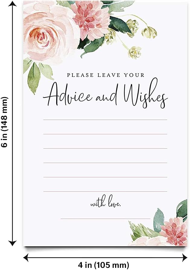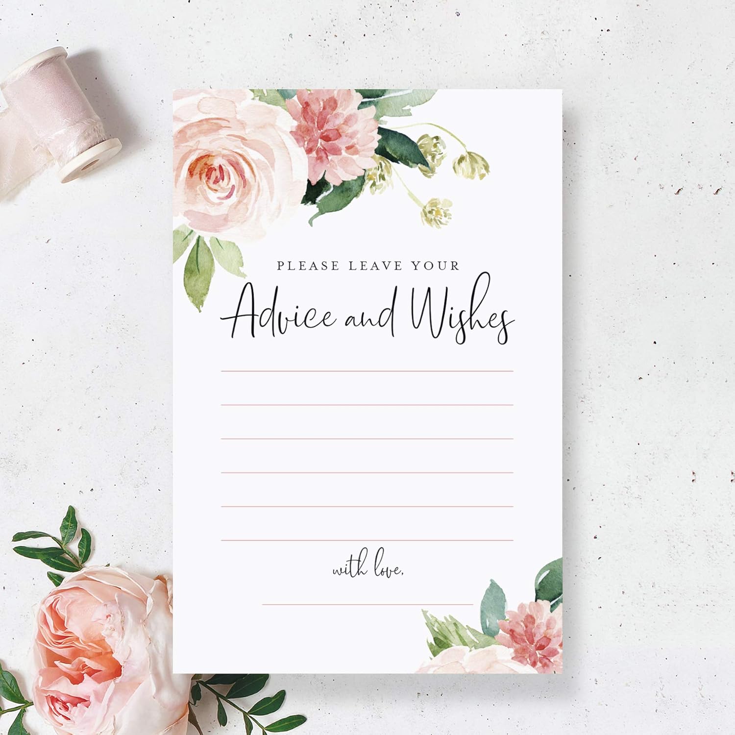 Bliss Collections Advice and Wishes Cards, Boho Floral Blush Pink and Greenery Design, Perfect for the Bride and Groom, Baby Shower, Bridal Shower, Graduate or Event! Pack of 50 4×6 Cards