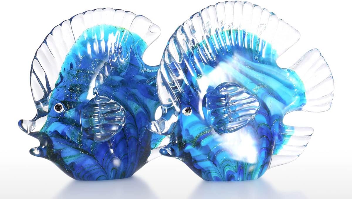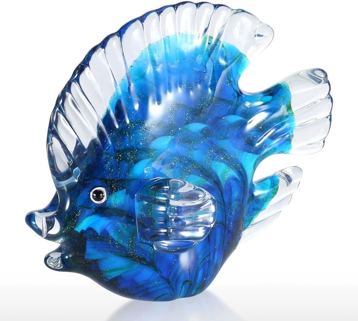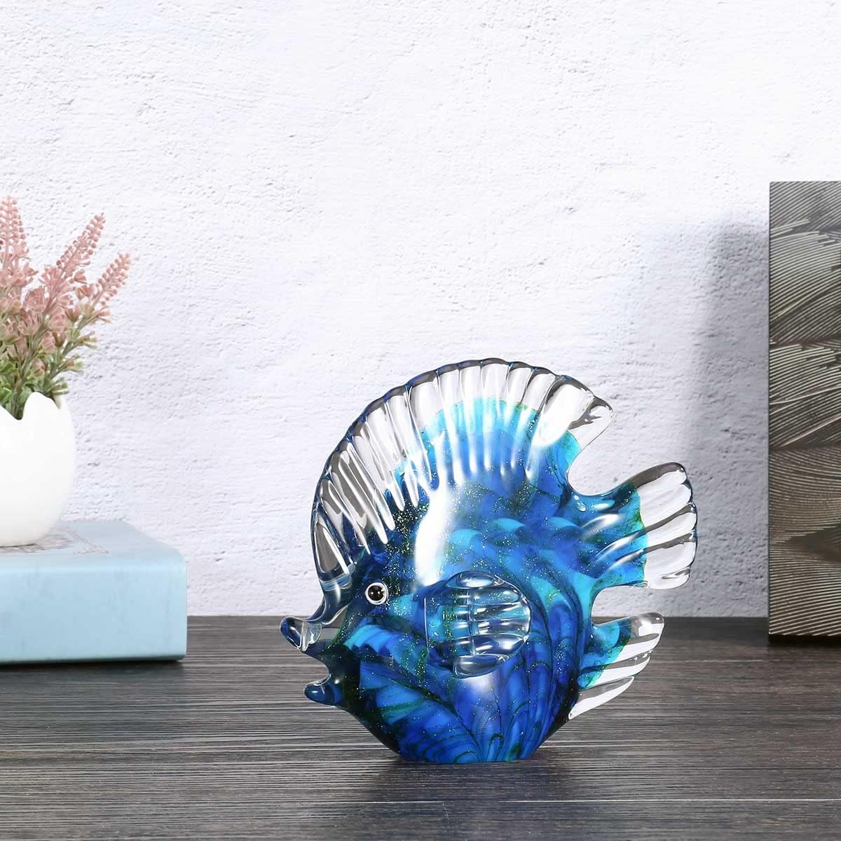 Blue Tropical Fish Glass Sculpture Home Decoration Office Ornament, Christmas Birthday Gift