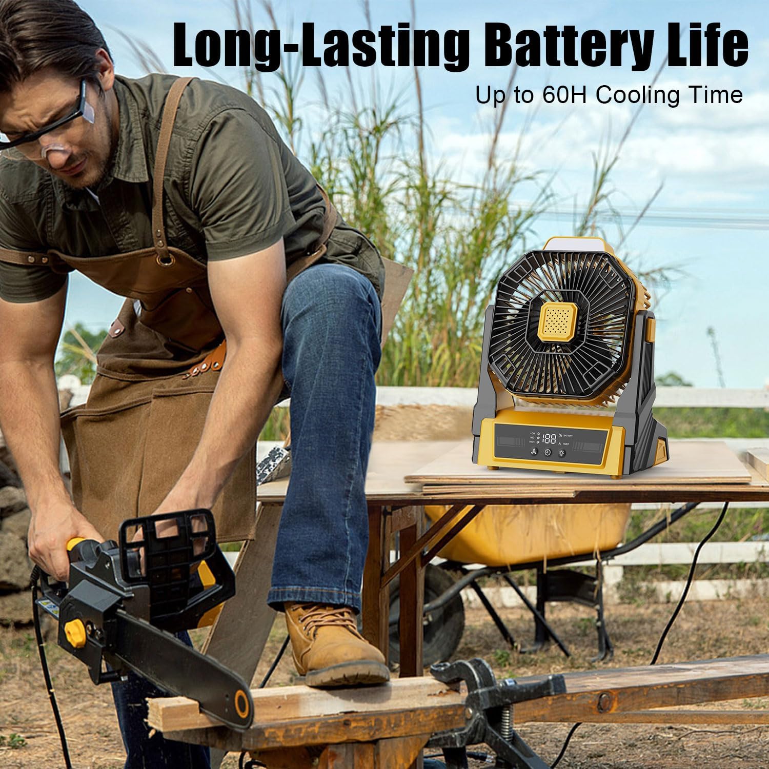 【Stay Cool Wherever You Go】Designed for powerful airflow, this battery-powered fan boasts a speed that generates 2600 CFM, ensuring effective cooling during hot summer days or in indoor settings. Its portable, cordless design makes it an ideal camping accessory for outdoor activities like camping, hiking, or picnicking, ensuring comfort wherever your adventures take you.