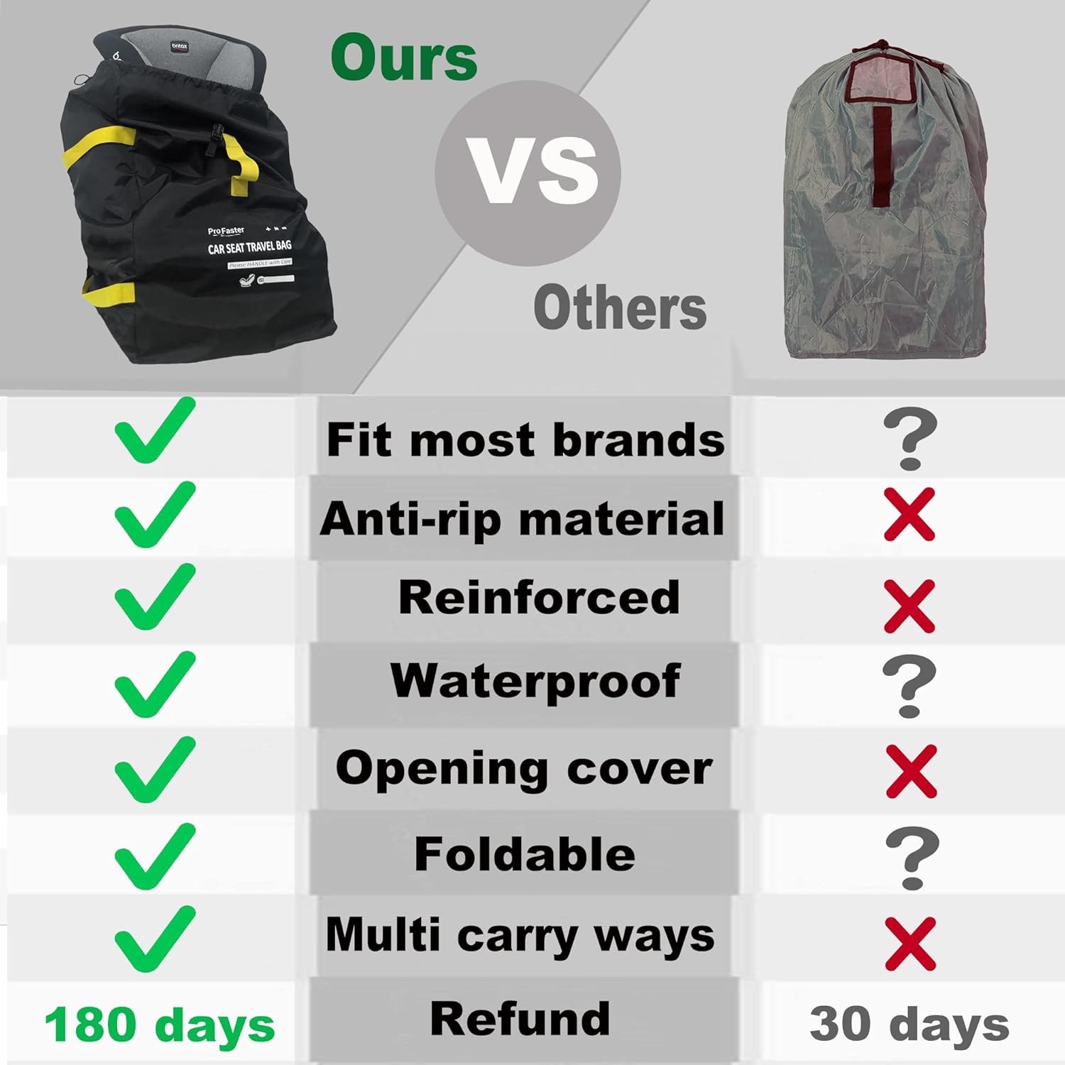 ✈ WHAT YOU GET – Come with one car seat duffle bag, one personalized luggage tab and 1 year non-risk fully refund guarantee. At KarFast, we are commited to offer better products and services, if you have any issues or concerns, please contact us, we will be happy to resolve your problems.