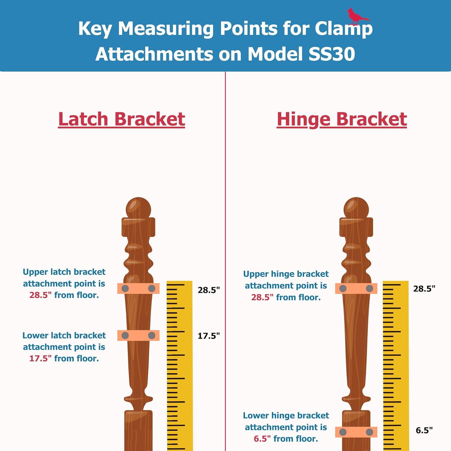 WORKS WITH CARDINAL GATES – The baby gate stair adapter works specifically with the Cardinal Gates Stairway Special Safety Gate, model SS30. We have clamps for square posts (models SC and SCL), round posts (model RC), spindles (model SPC), and wrought iron posts (models WIK and WIKL).