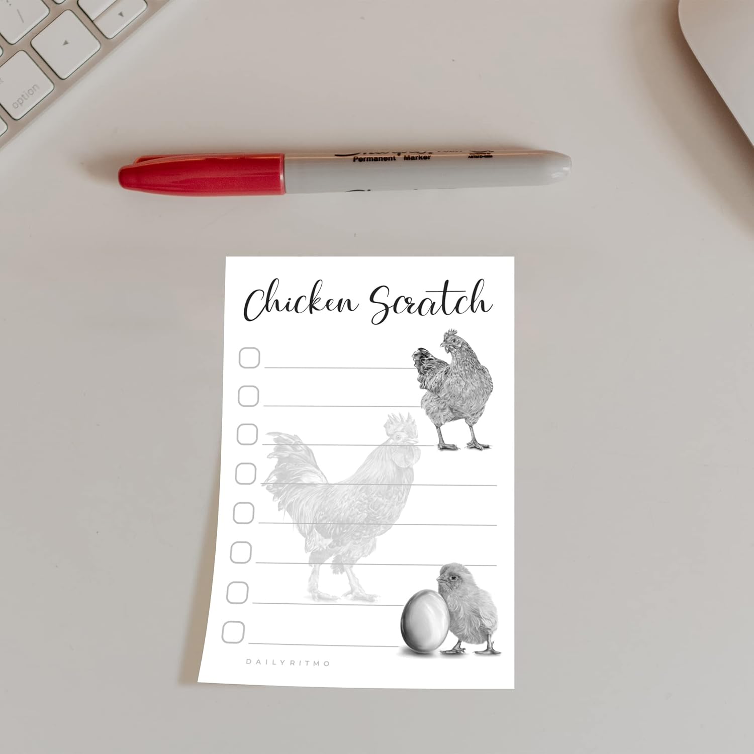 Chicken Scratch Hens Sticky to Do Notepad – Rooster Baby Chick Chicken Coop Lover Gifts | Country Themed Notebook | ChickenScratch Chicklet Barn Office Decor Accessories 4×6 50 Pages