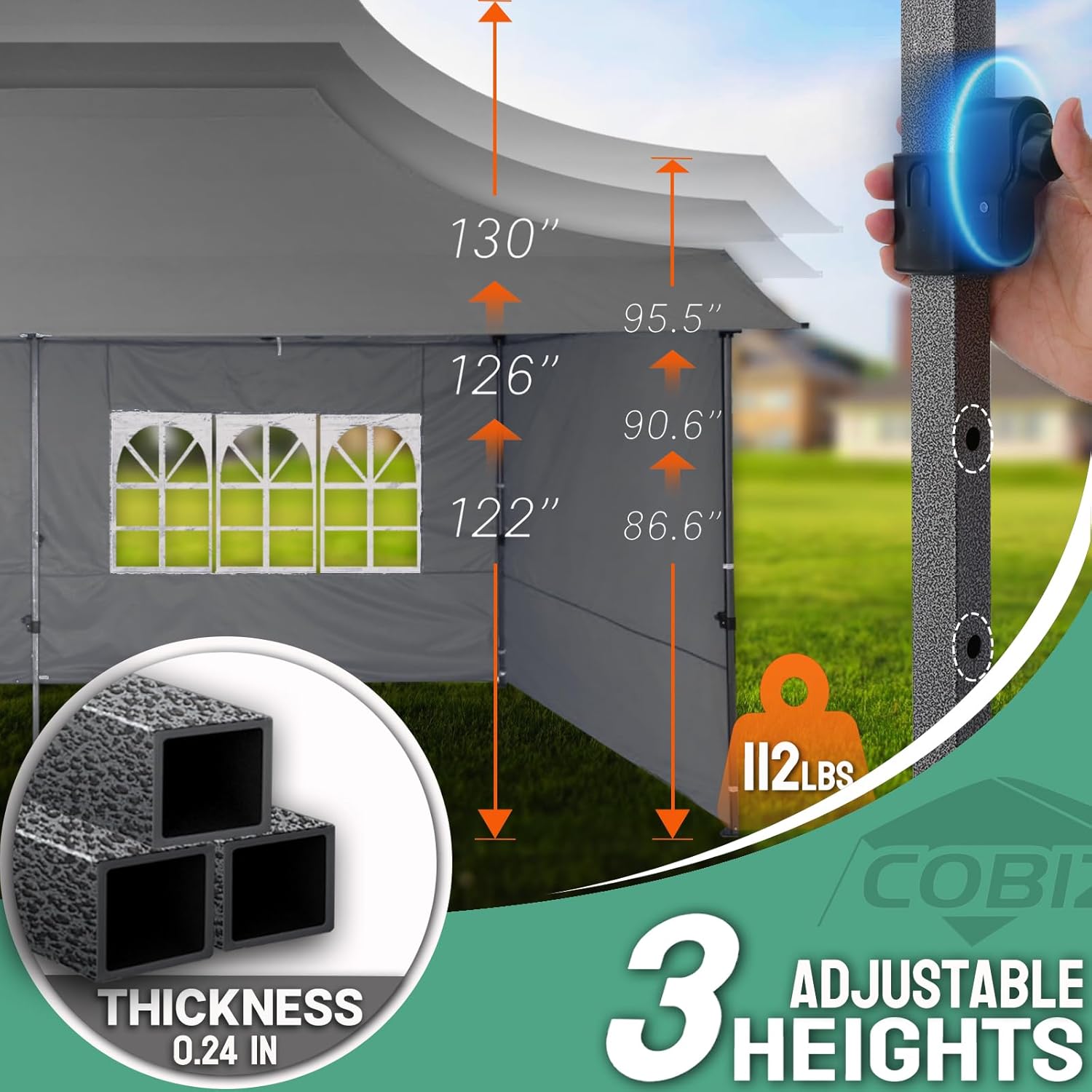 COBIZI 10×20 Pop Up Canopy Tent Heavy Duty with Sidewalls, Outdoor Commercial Canopy with Awning, Waterproof&45 SF Extended Awning, Vendor Tent for Market, Party Events, Grey