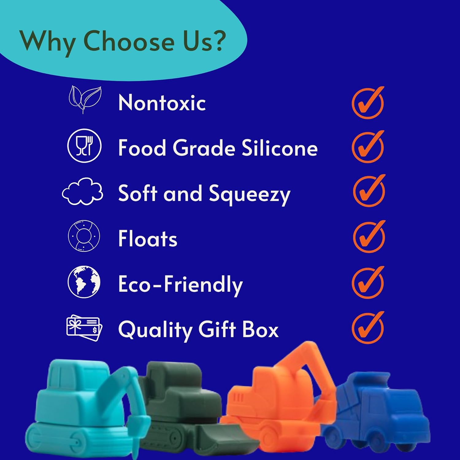 Construct Crew by Toy Appetit: Non-Toxic, Mold-Free Silicone Bath Toys for Babies 6-12 Months