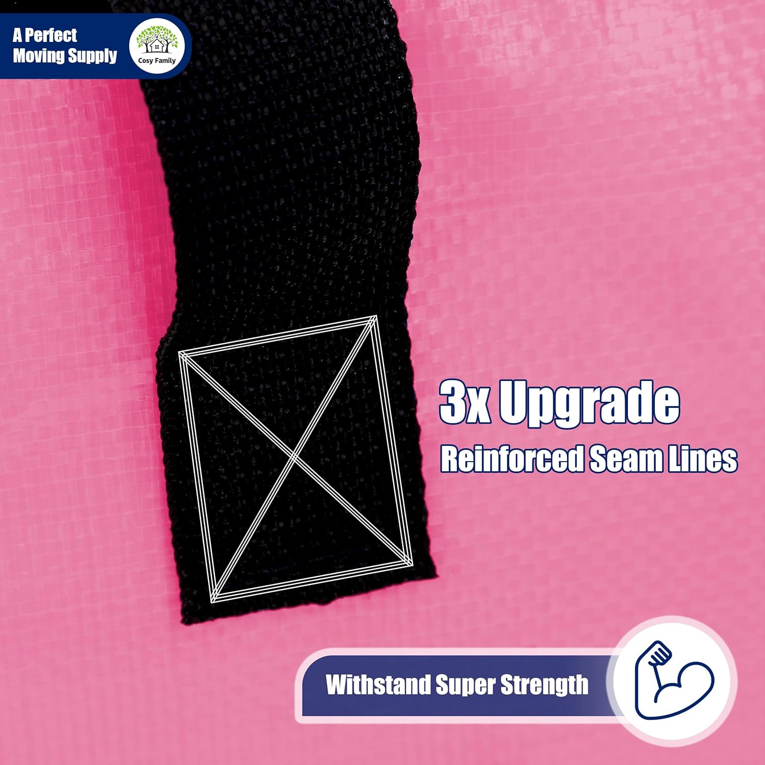 Cosy Family 4 Pack Heavy Duty Extra Large Moving Bags with Backpack Straps – Strong Handles & Zippers, Storage Totes For Space Saving, Fold Flat, Alternative to Moving Box, Pink
