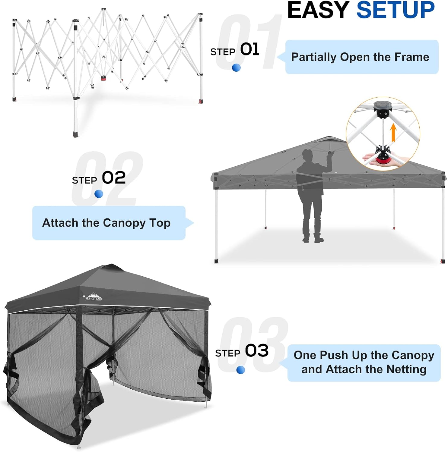 EAGLE PEAK 10×10 Outdoor Easy Pop up Canopy with Netting, Instant Screen Party Tent with Mesh Side Walls, Gray