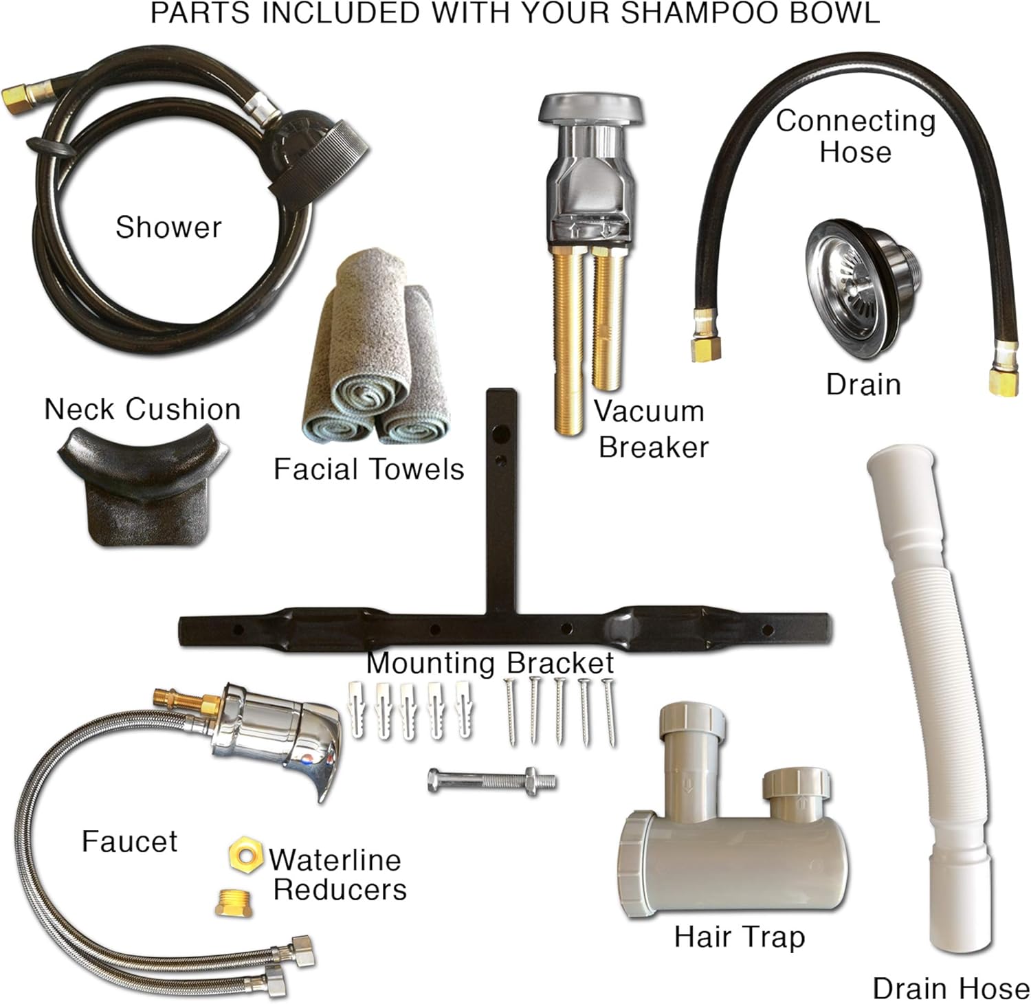 Faucet Vacuum Breaker Hair Trap Gel Neck rest Spray Hose Drain