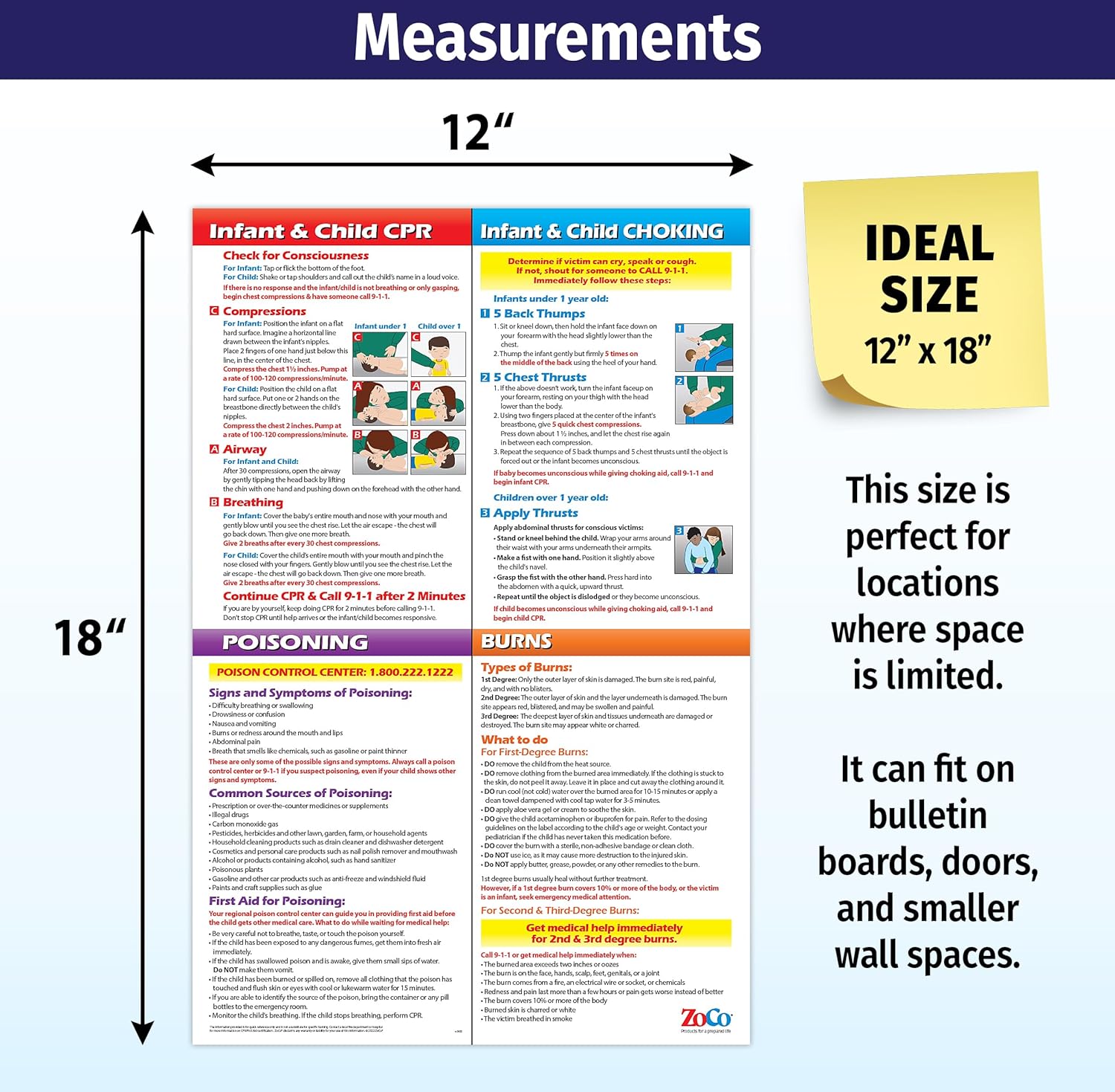 A MUST HAVE — Hang this poster prominently where caregivers, teachers, and parents can easily access it in emergencies such as: a nursery or baby’s room, near first aid supplies, in childcare centers, and the school nurse’s office.