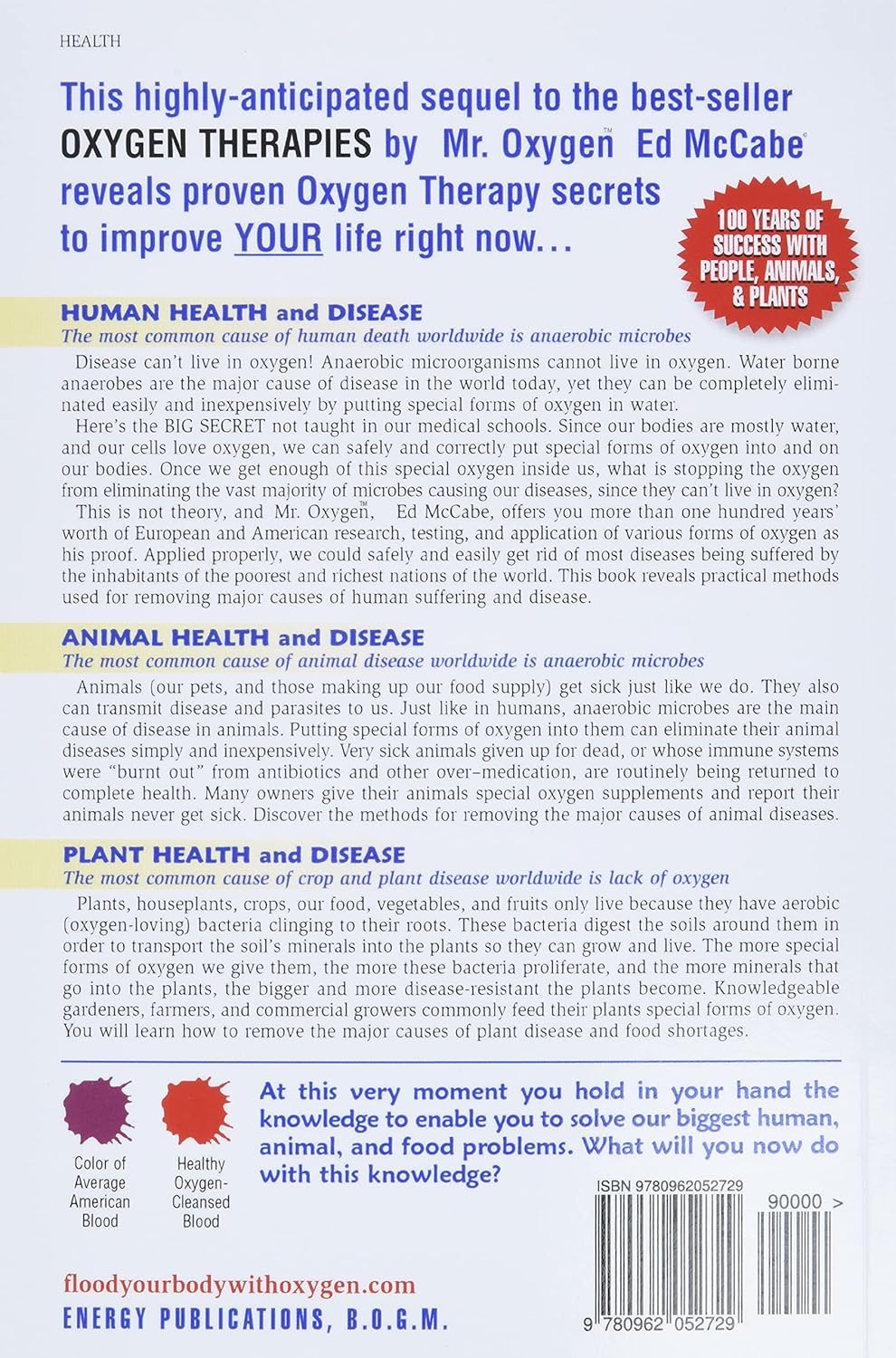 Flood Your Body With Oxygen is “Mr. Oxygen” Ed McCabe’s follow-up to his best-seller Oxygen Therapies, and is the seminal work on the subject and encompasses its’ entirety. DISEASES CAN’T LIVE IN ACTIVE OXYGEN. Proven safe solutions for all the major problems facing our health, our animals, our food supply, and our environment are explained simply and backed up with testimonials and industry and medical cites. Complete explanations and usage of all known Oxygen Therapies. Referrals.