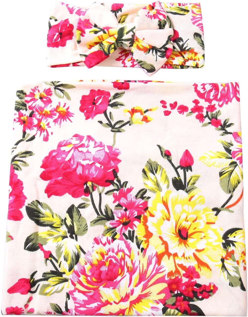 Newborn swaddle blanket headband set flower print baby receiving blankets