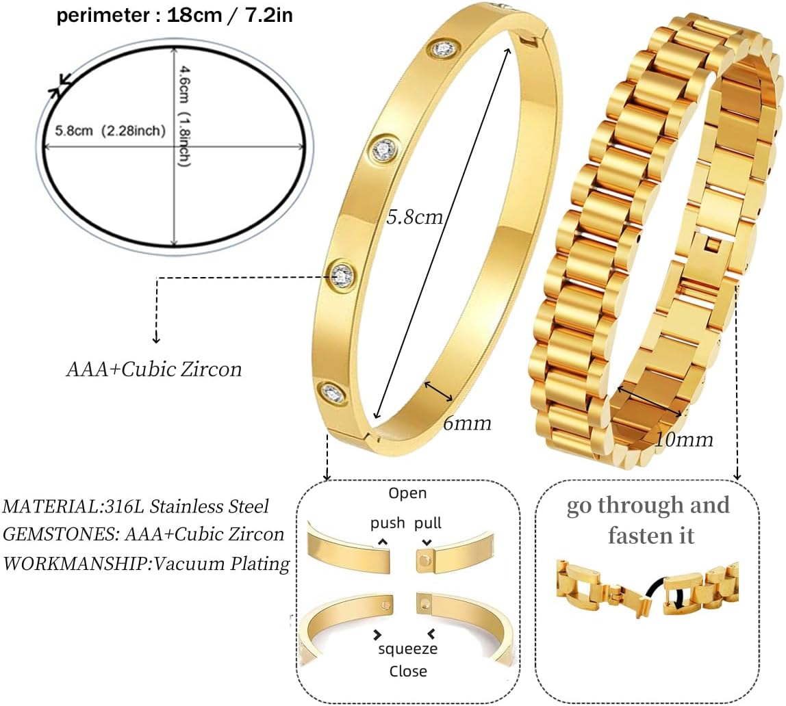 Gold Bangle Bracelets for Women Personalized Cubic Zirconia Love Bracelets 18K Gold Plated Stainless Steel Bangles Bracelets Gifts for Her