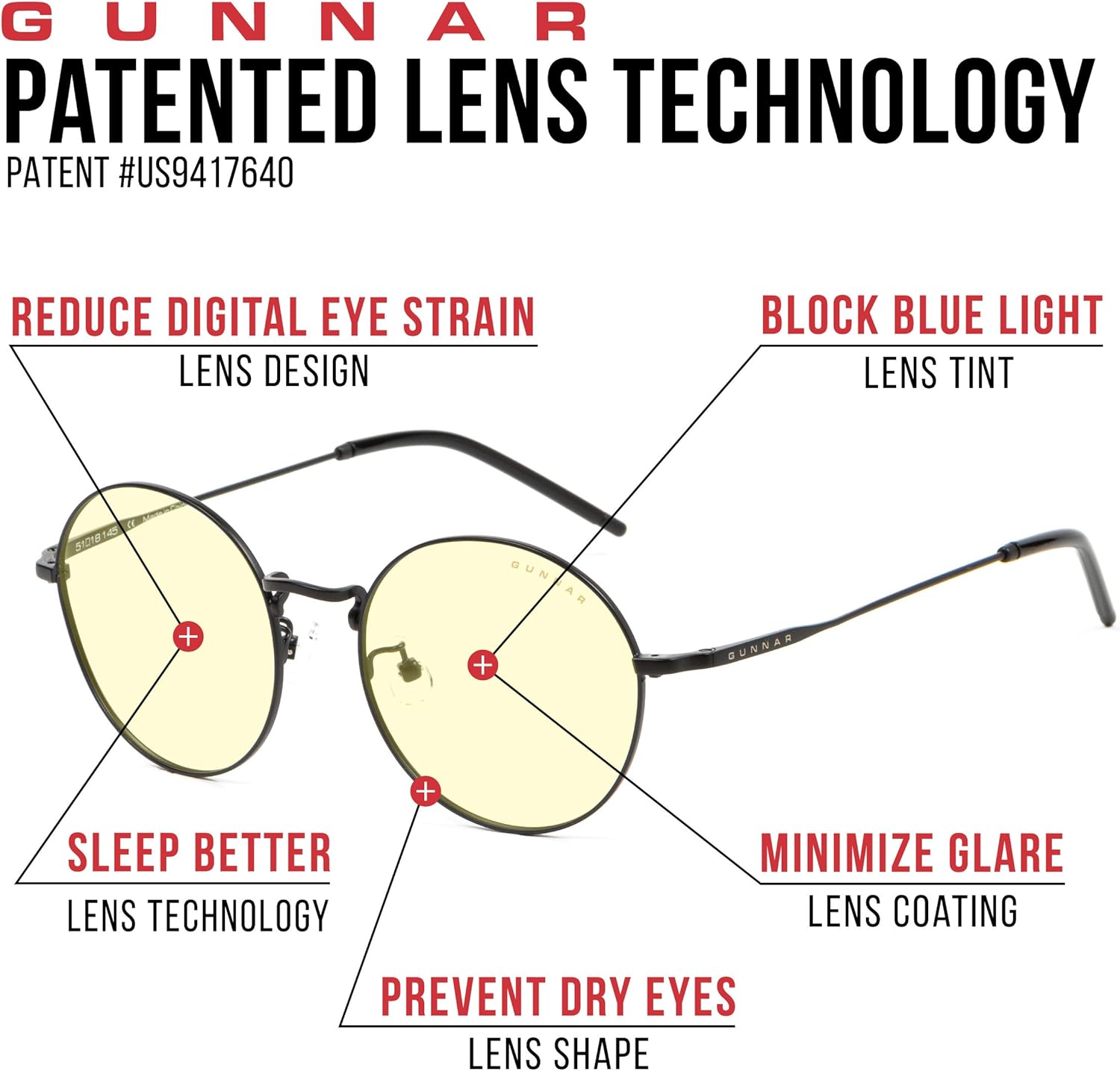 GUNNAR glasses limit air currents near the eyes, increasing humidity and preventing irritation. The patented optical design enhances focus and sharpens detail to ease eye strain.