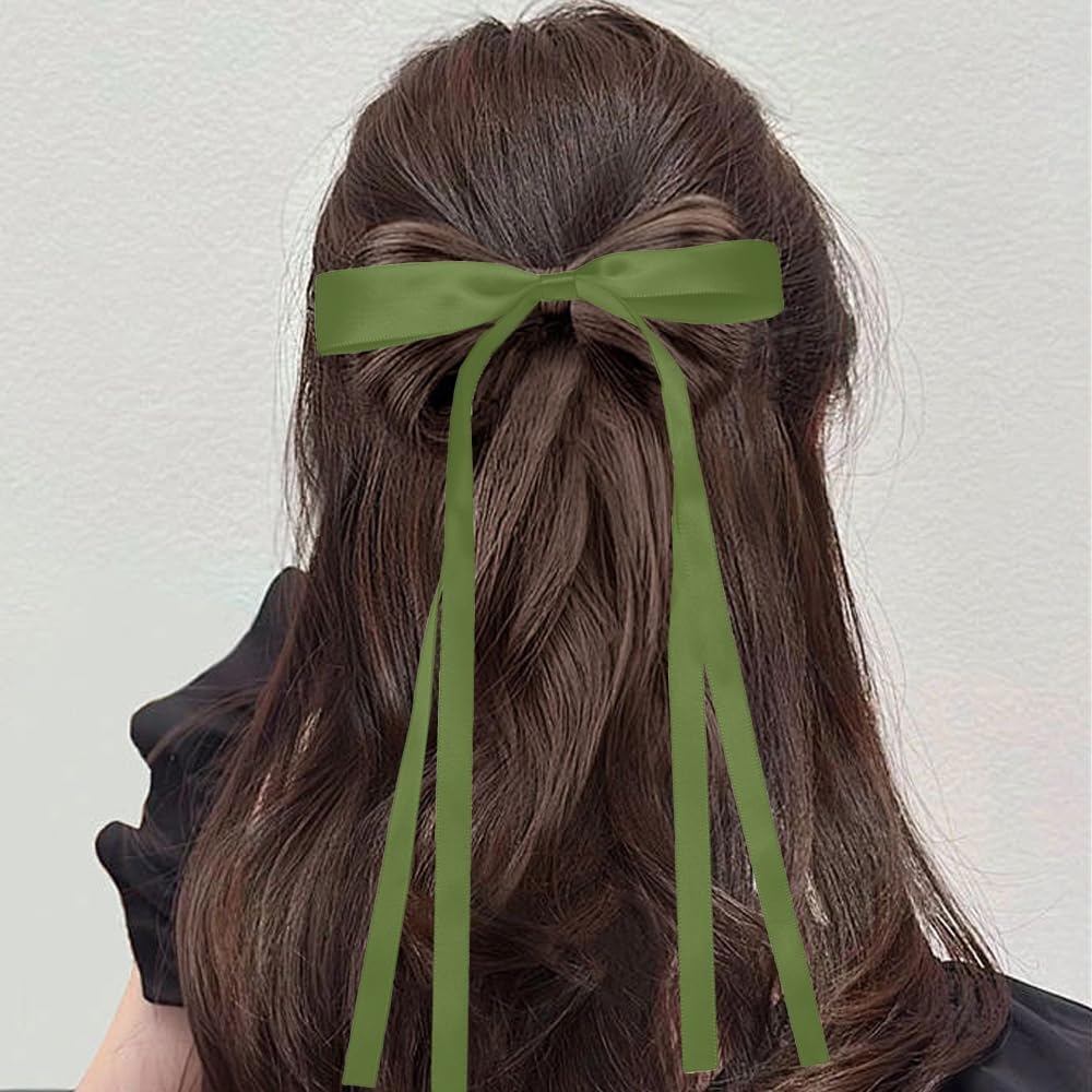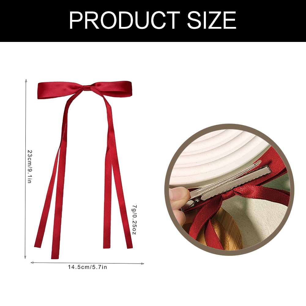 Hair Bows for Women,4 Pcs Hair Ribbon Bows for Women,Ribbon for Hair Bows,Coquette Bows,Long Hair Bows,Hair Bows,Hair Clips,Hair Accessories for Festival Party Halloween Christmas(Green Red)