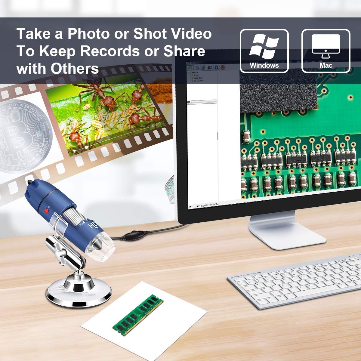 Cainda USB Digital Microscope: Connecting this microscope to your devices via USB, you can see the microworld image on your PC or android phone screen. Equipped with 8 LED lights. Support screenshot and video recording.Help you to get the better image.