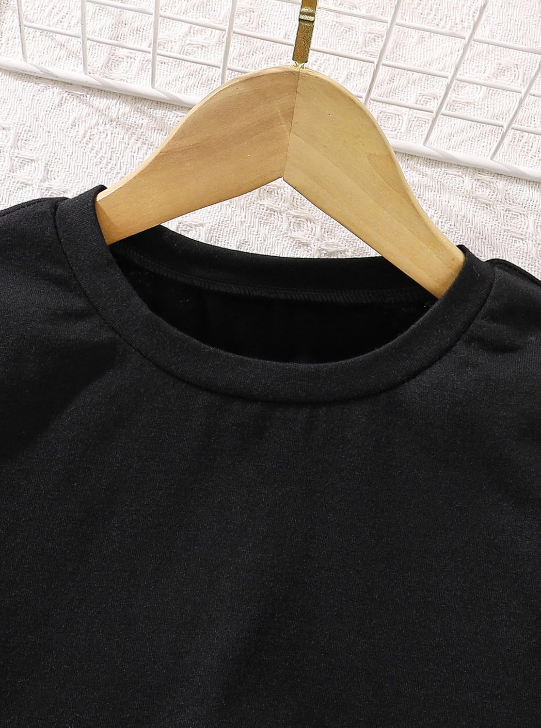 Girl Cute Crewneck Tee and Baggy Cargo Jumpsuit Sets 2pcs Outfits Summer Fall