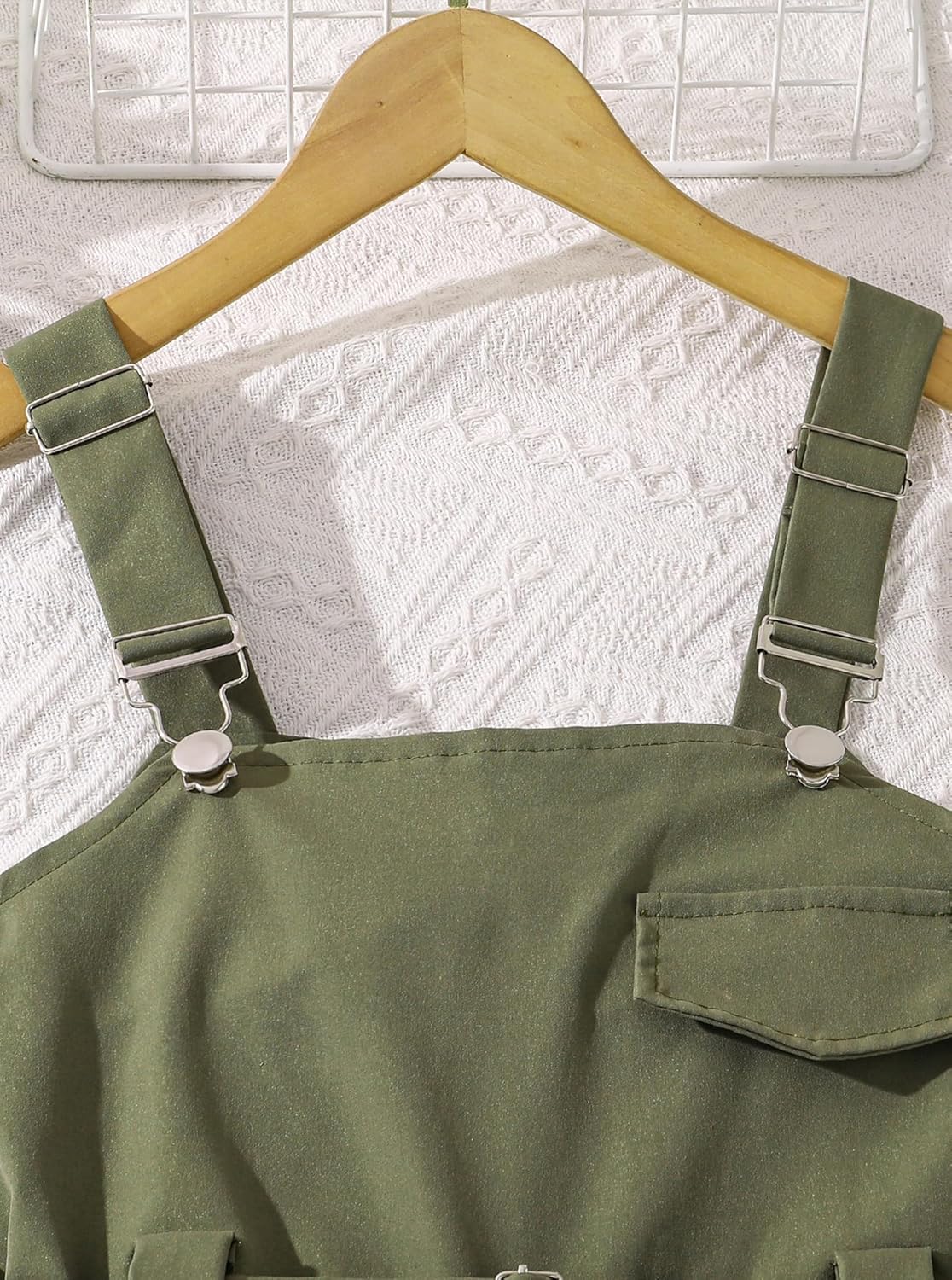 Hilinker Girl’s Overalls 2 Piece Outfits Short Sleeve Top and Cargo Jumpsuit Set with Pockets 7-14 Years