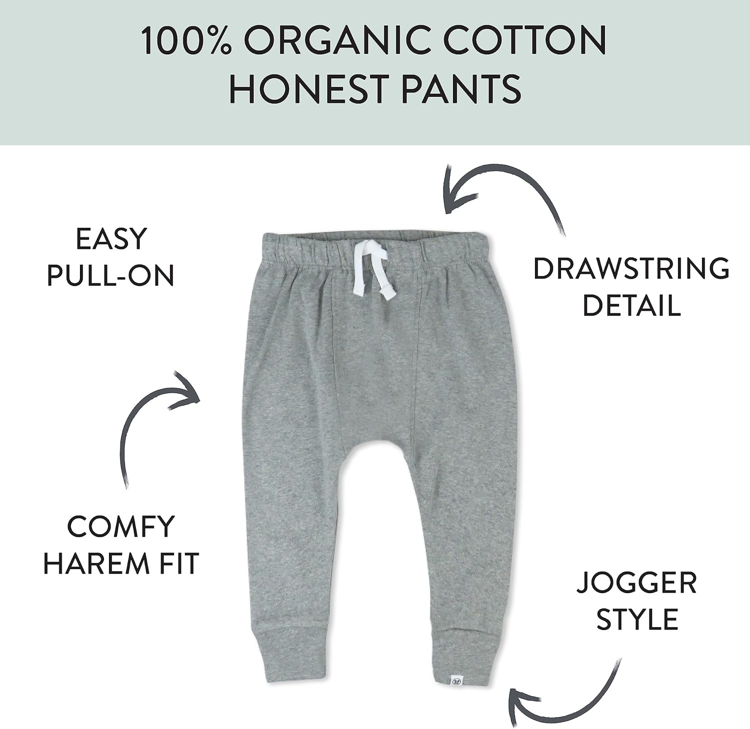 HonestBaby Multipack Honest Pants Joggers Pull on 100% Organic Cotton for Infant Baby and Toddler, Boys, Girls, Unisex