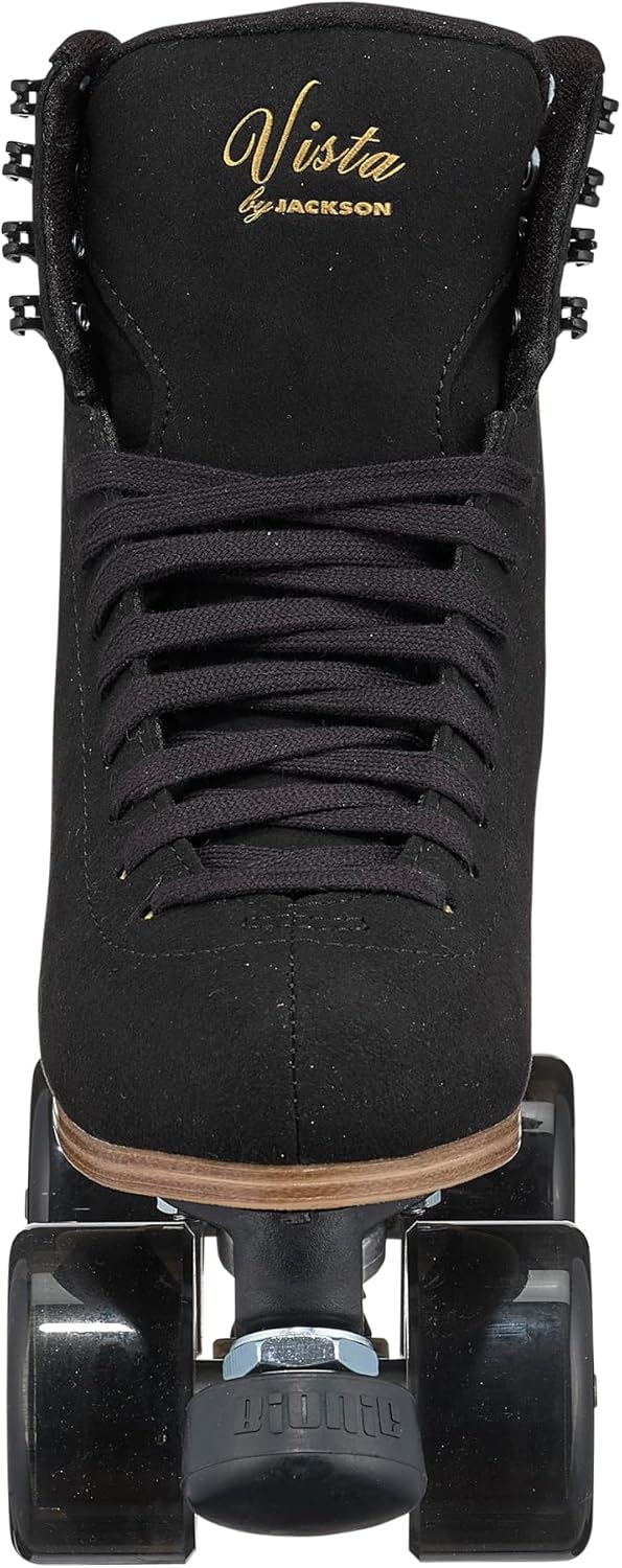 Show off your personality in style with the Jackson Vista Roller Skates. The Jackson Vista provides a perfect combination of comfort and support. They are the ultimate choice for skaters looking for top-notch performance and style. Vista packages feature premium suede boots for superior comfort and durability, as well as top-of-the-line 78a Atom Pulse Lite wheels for unmatched stability and control. The sleek design is inspired by Jackson’s long history of innovation in the skating industry and will leave you looking and feeling like a pro! Whether you’re a beginner or an experienced skater, the Jackson Vista Suede Skate Package has everything you need to elevate your skating experience and make the most out of every outing! Vista Boot – This Vegan friendly boot features Suede Microfiber uppers, Solein board reinforcement for strength, feel, comfort and security. Memory foam ankle padding for comfort and feel. Flex notch for greater ankle flex. A rolled collar that eliminates irritation to Achilles tendons. Foam-backed vinyl and mesh comfort tongue and Stylized traditional PVC soles. Viper Nylon Plate – This plate features Atom’s signature 16-degree trucks, Reinforced Zytel Nylon baseplate, making it lightweight, strong, and responsive. This plate also includes one-piece cast trucks, steel kingpins, Nyloc kingpin nuts, 8mm axles, rubber cushions and our adjustable height Bionic XS Stopper. Bionic Abec 7 Bearings – These bearings feature a Delrin cage reinforced, removable rubber shields for cleaning and are lubricated with speed oil which require no break-in period. Atom Pulse Lite Wheels – These 62mm x 33mm 78A wheels feature our hollow core technology and are designed with a high rebound formula that ensures maximum energy return with every stride, giving you more speed and efficiency on the road. Glide over rough terrain effortlessly, say goodbye to vibration fatigue and say hello to a more enjoyable skating experience.