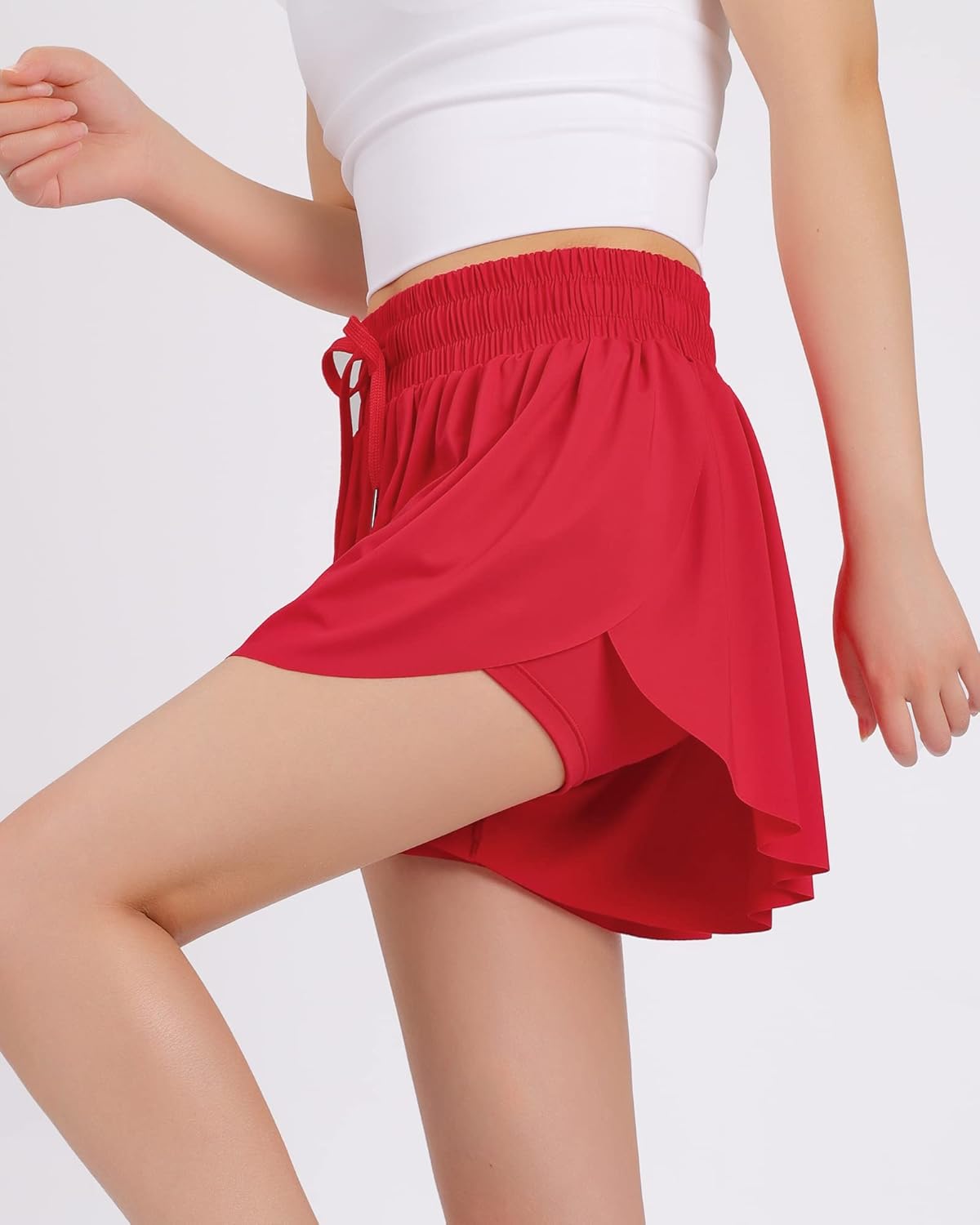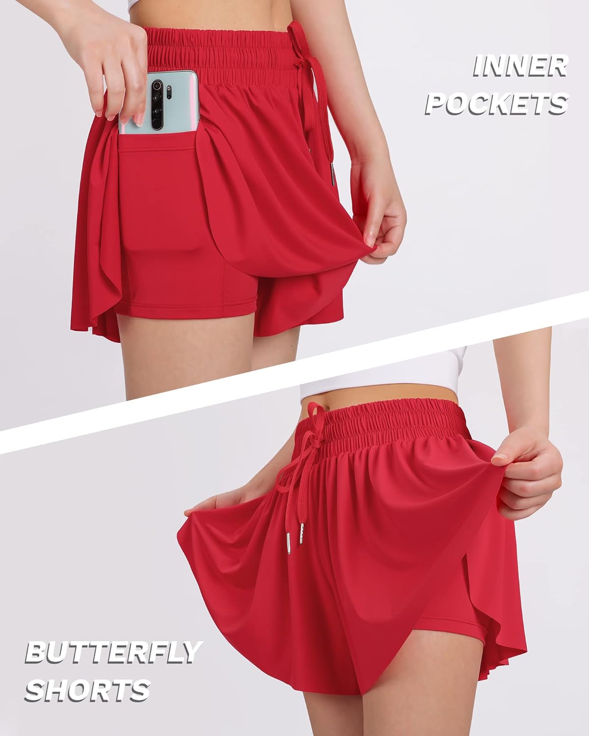 JOCMIC Girls Flowy Shorts, 2 in 1 Preppy Butterfly Shorts with Spandex Liner for Cheer Athletic Gym Teens Casual Clothes