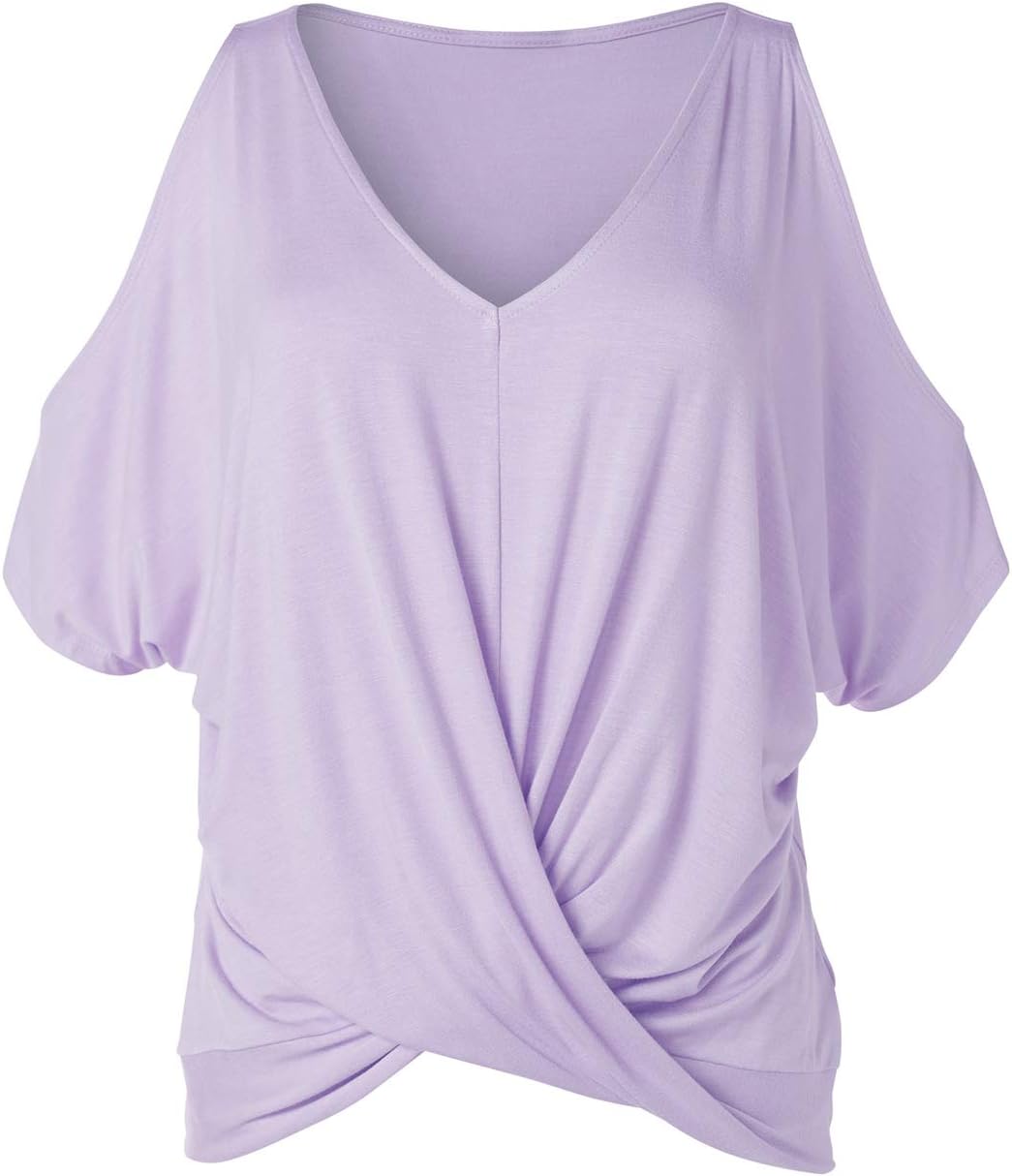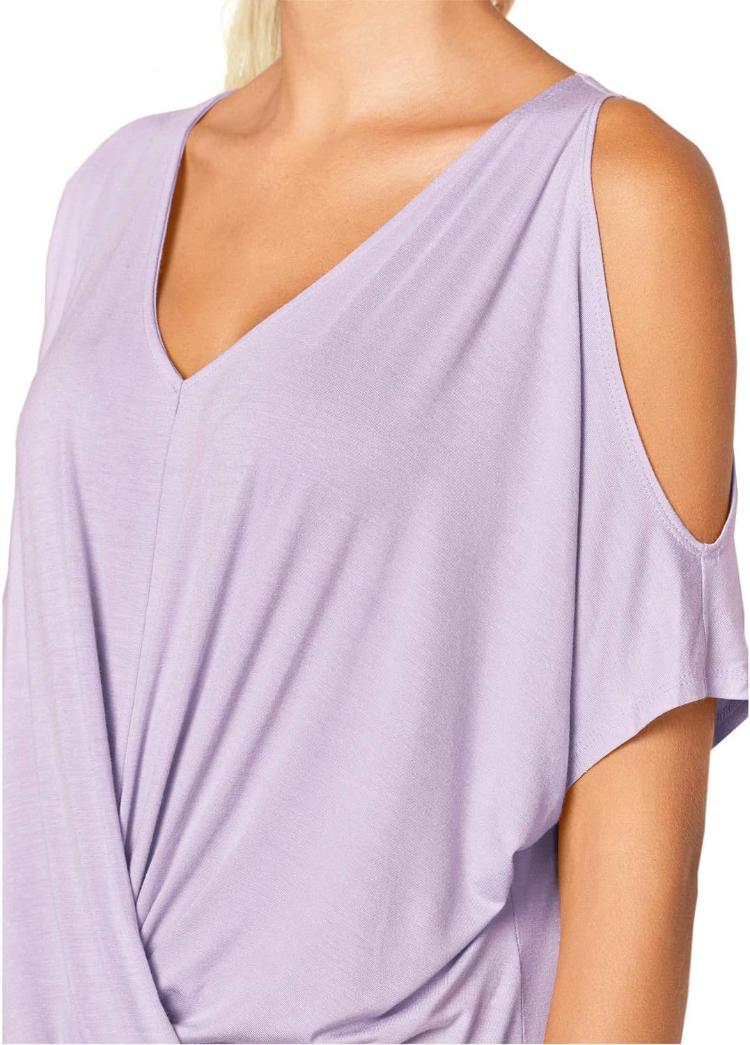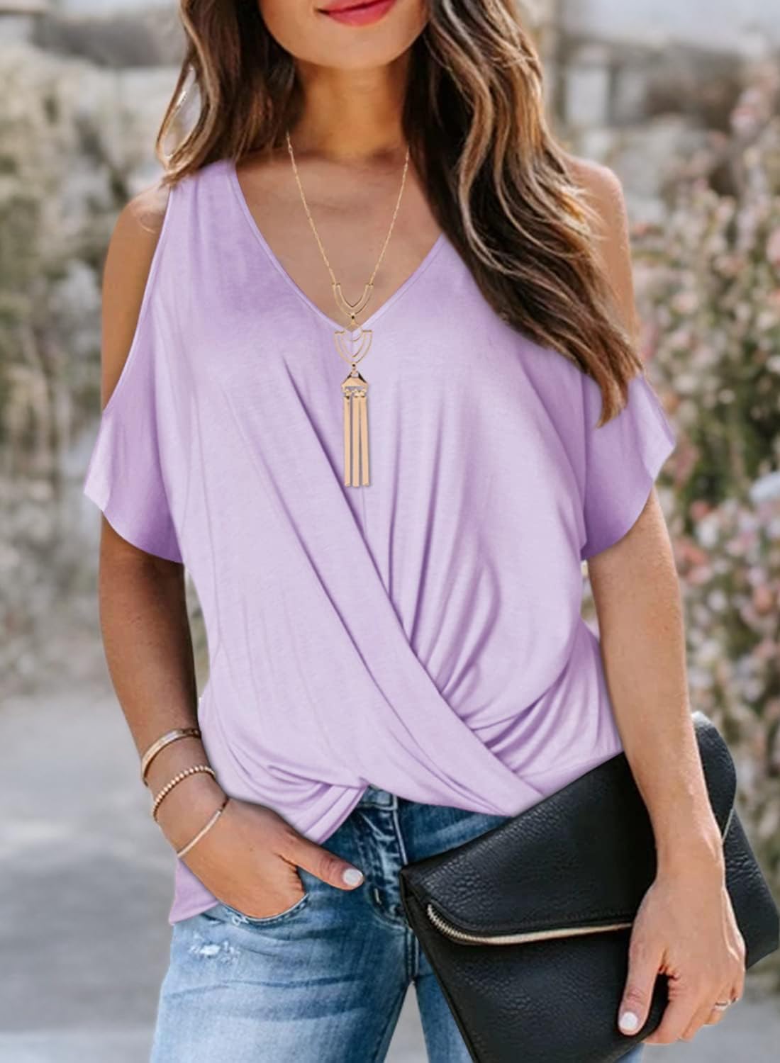 LEIYEE Womens Summer Cold Shoulder Tops Short Sleeve Front Twist Knot V Neck T Shirts Draped Blouses