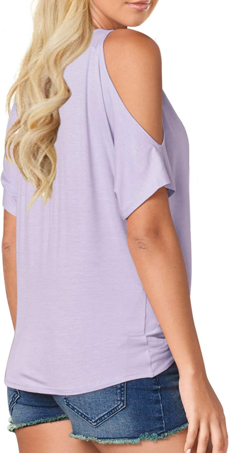 LEIYEE Womens Summer Short Sleeve Casual V Neck Cold Shoulder Shirts Loose Blouses