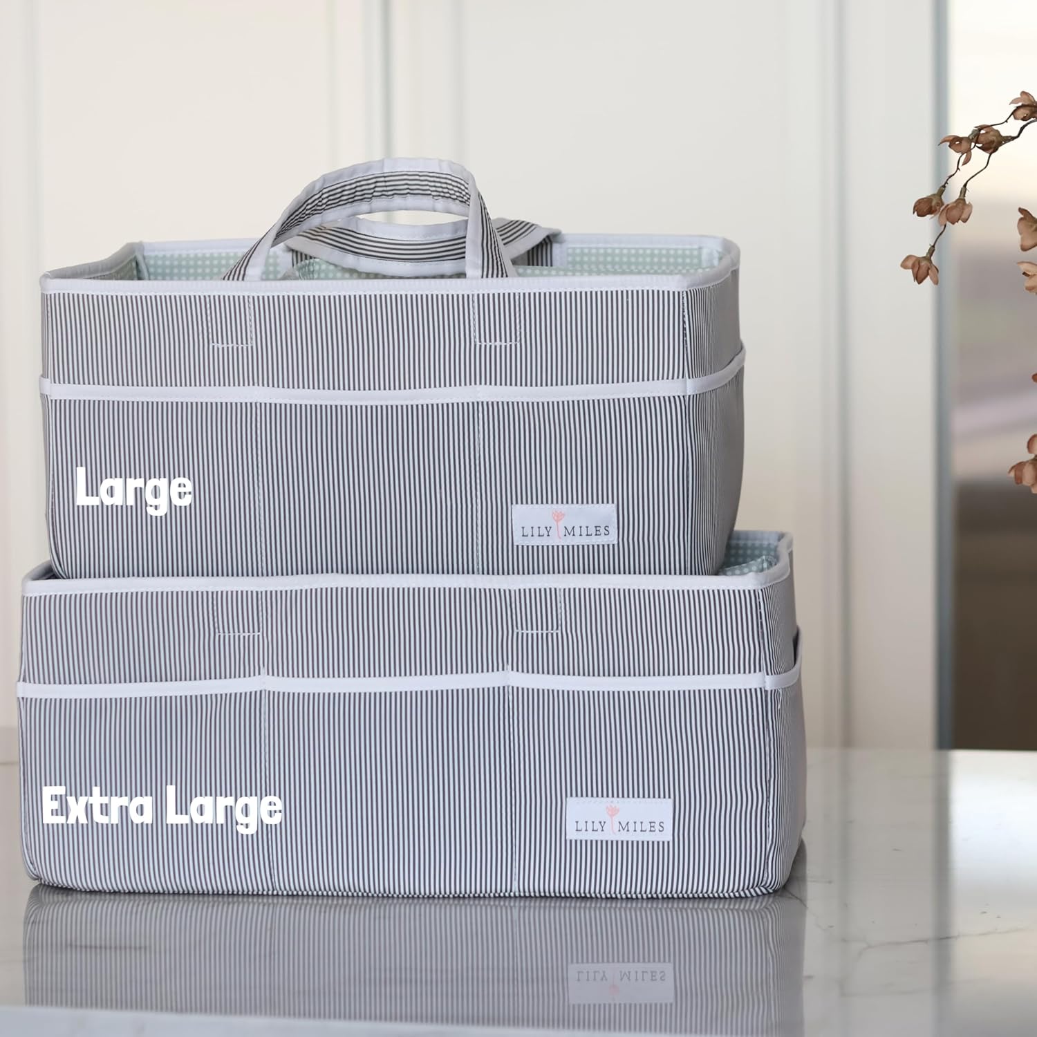 Lily Miles Baby Diaper Caddy – Organizer Tote Bag for Baby Girl Essentials – Baby Shower Basket – Nursery Must Haves – Registry Favorites – Newborn Caddie Car Travel – Gray/Blush, Extra Large
