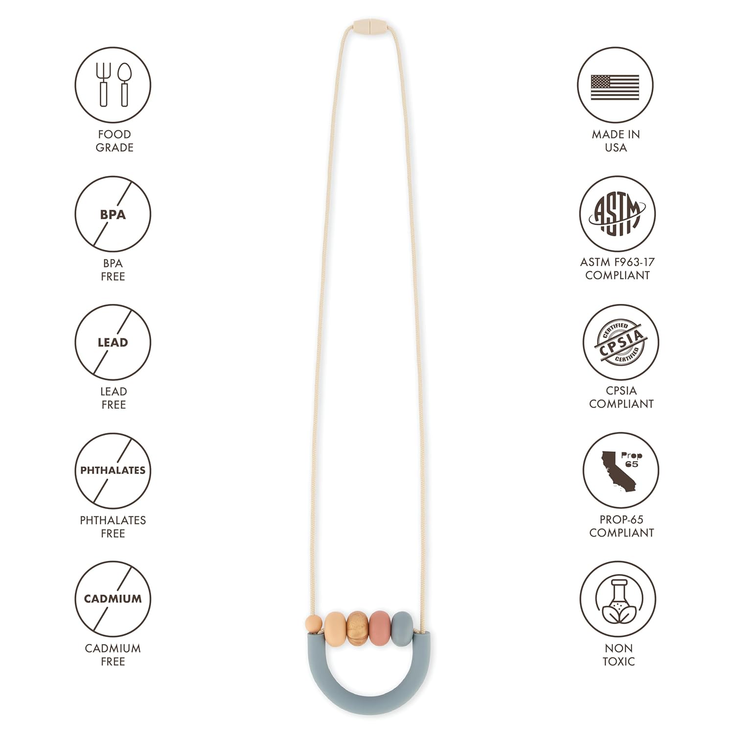Safety First: This teething jewelry is made from non-toxic, food-grade silicone. Every component passes independent third party safety testing and adheres to CPSIA, ASTM F963-17 and Prop 65. Our products are free from harmful substances, such as lead, cadmium, BPA and phthalates.