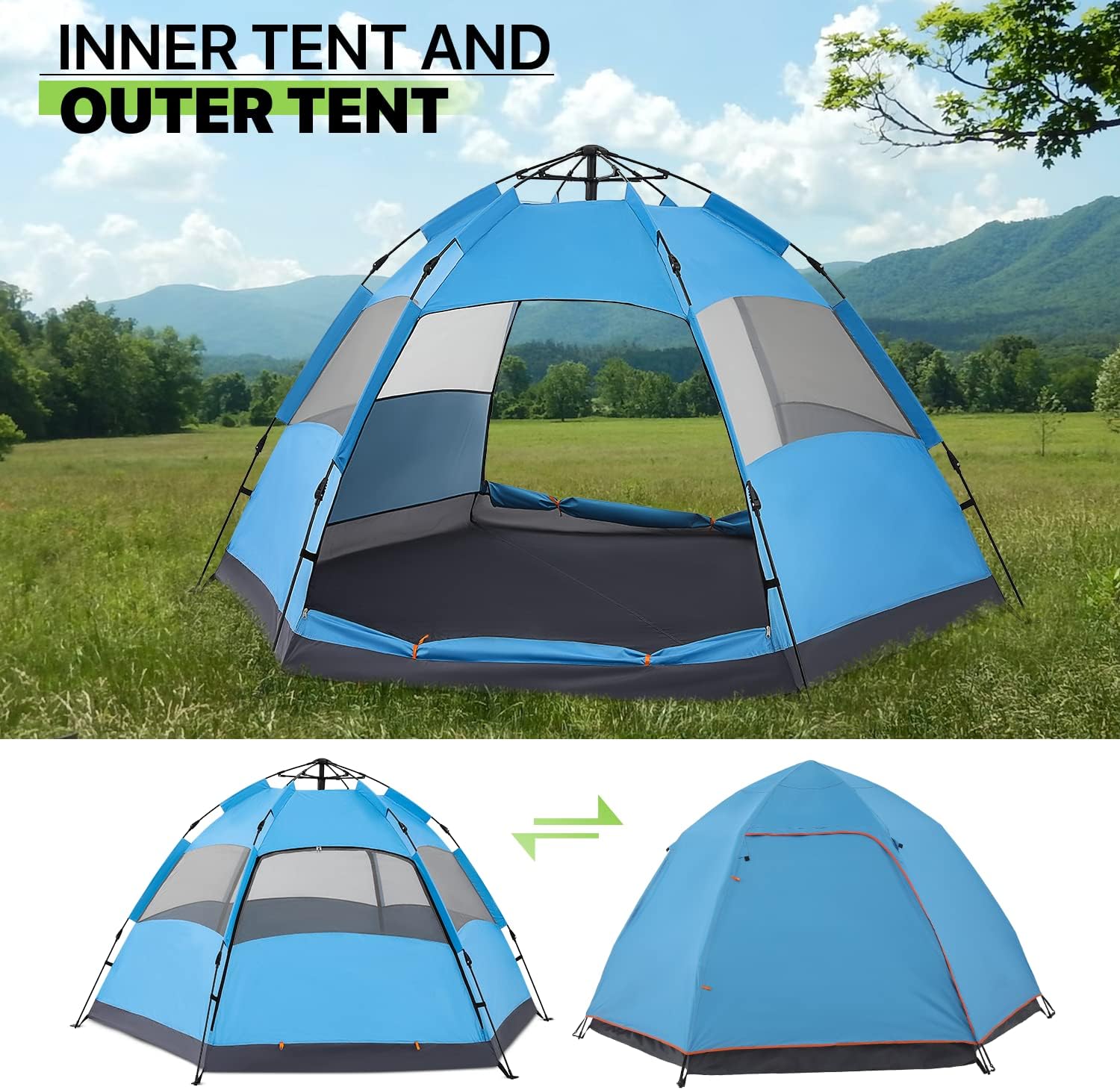 Quick and Easy Setup: Featuring an instant pop-up hydraulic system, this tent can be set up in just minutes. Its sturdy spider-leg construction forms a durable dome shape, ensuring stability even in windy conditions. Say goodbye to complicated setups and spend more time enjoying the great outdoors