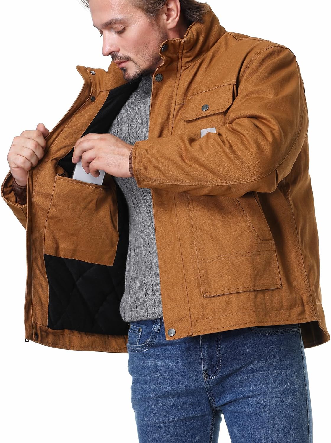 Men’s Quilted Flannel Lined Work Coat Long-Lasting Loose Casual Jacket Waterproof Workwear