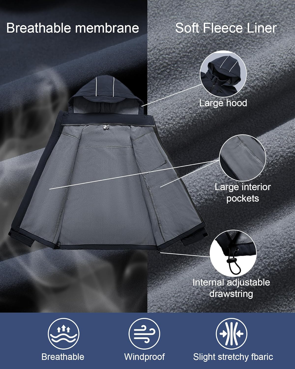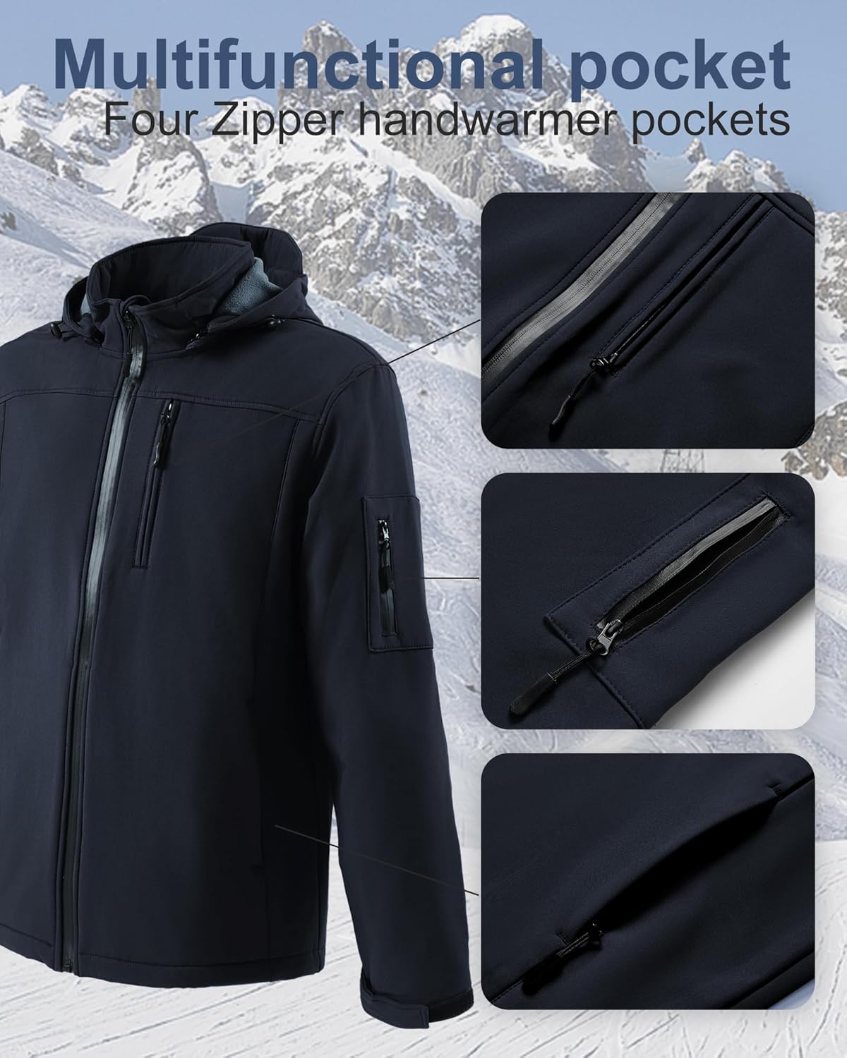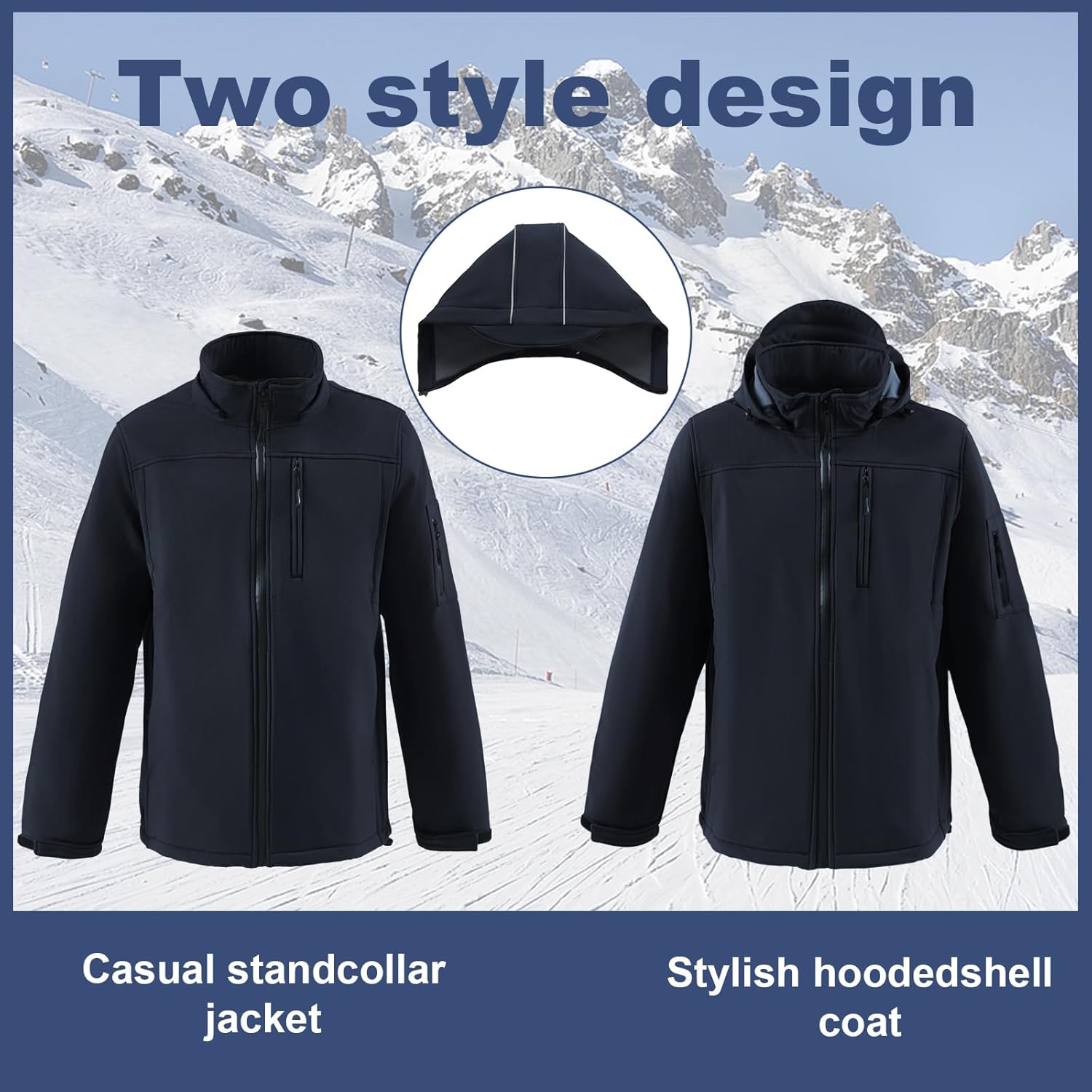 Men’s Soft Shell Jacket Waterproof Military Tactical Coat Winter Fleece Lined Rain Jacket with Detachable Hood